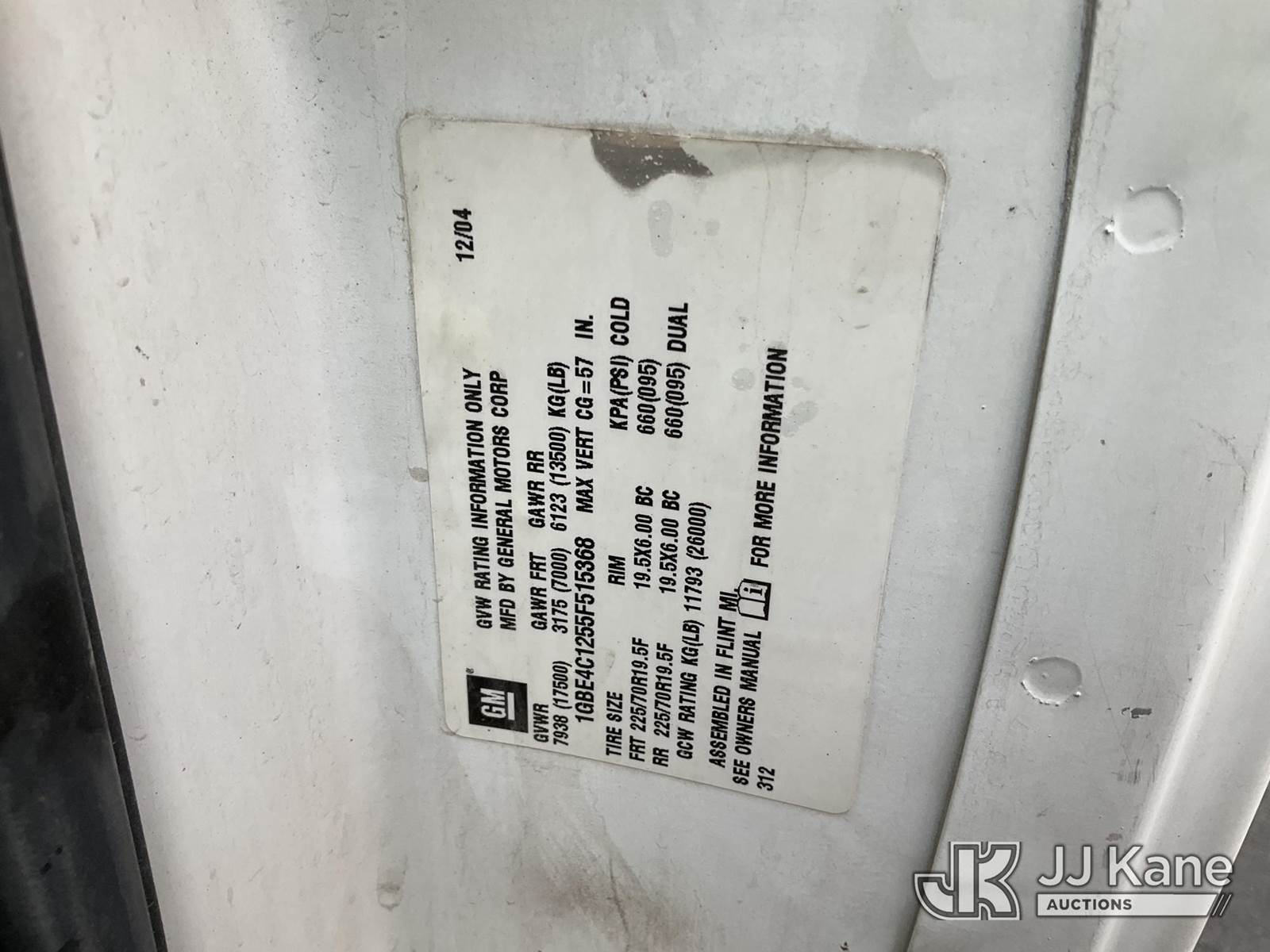 2005 Chevrolet C4500 Dump Truck, 6.6L diesel, Auto, A/C, (Exempt from Odometer Disclosure - Reads 120,456 miles) (Runs, Moves & Operates) (Transmission Slips) This is a Titled Item NOTE: This unit is being sold AS IS/WHERE IS via Timed Auction and is located in Salt Lake City, UT. Inspection & preview days for this unit are the 2 business days prior to the first day of items closing for this auction, item is located at 2353 N Redwood Rd Salt Lake City, UT 84116 and hours of operations are 8a-4p. Titles executed exactly as bidder registered. Ensure your name and/or business name and address in JJ Kane and/or ProxiBid is correct before bidding. For pre-sale questions, please contact Office Staff @ (801) 519-0123. (Buyer is responsible for removal. Assistance by consignor or JJ Kane Auctions is not assured.)