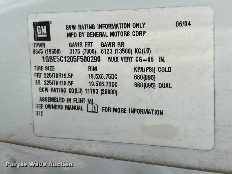VIN: 1GBE5C1205F500290