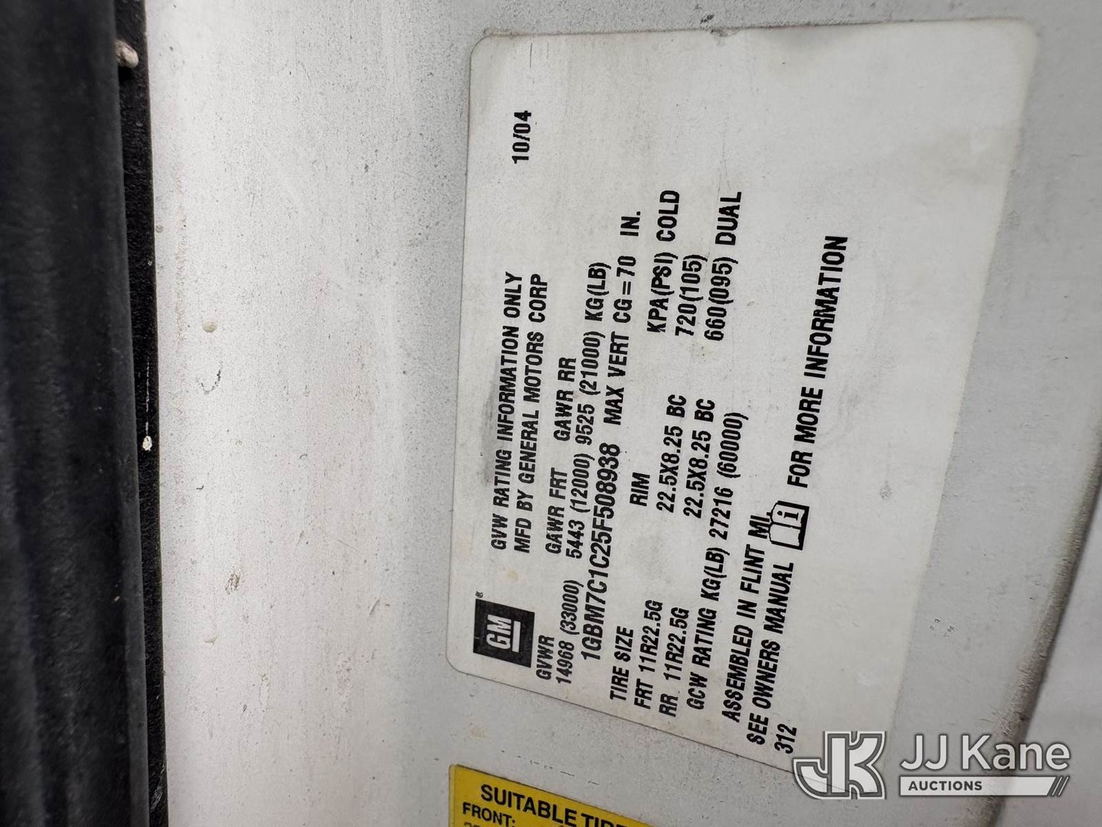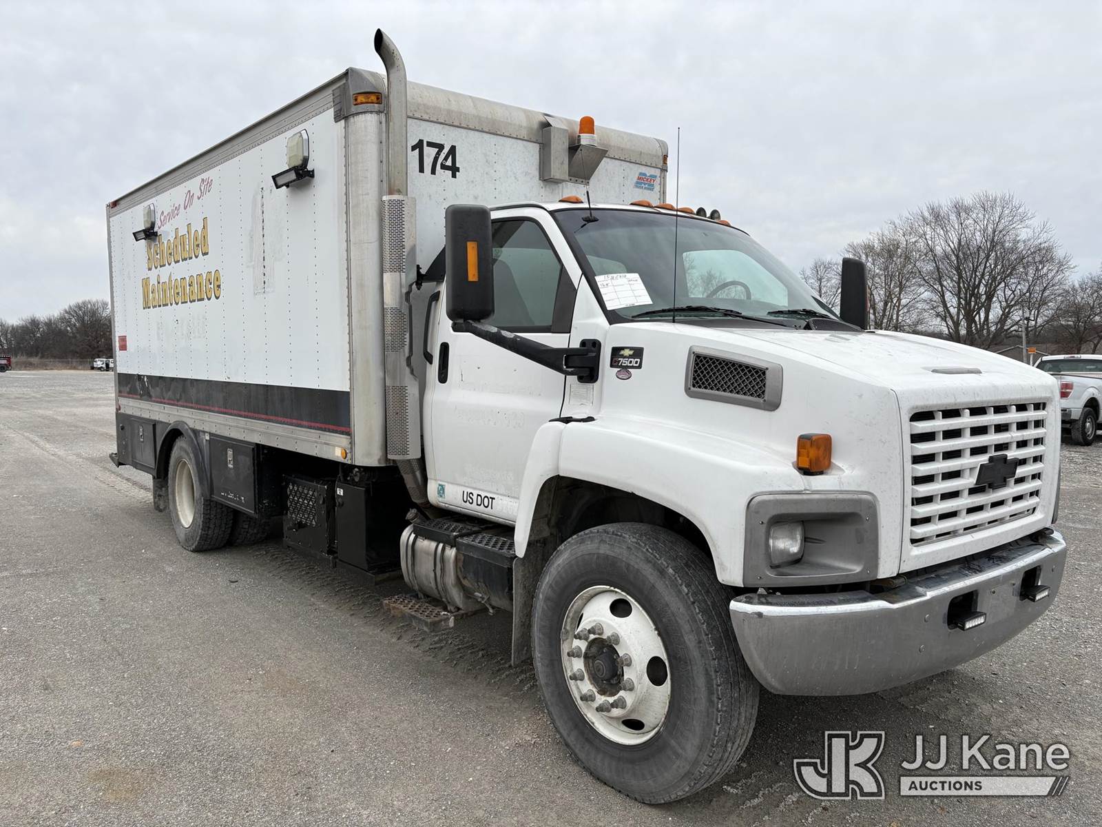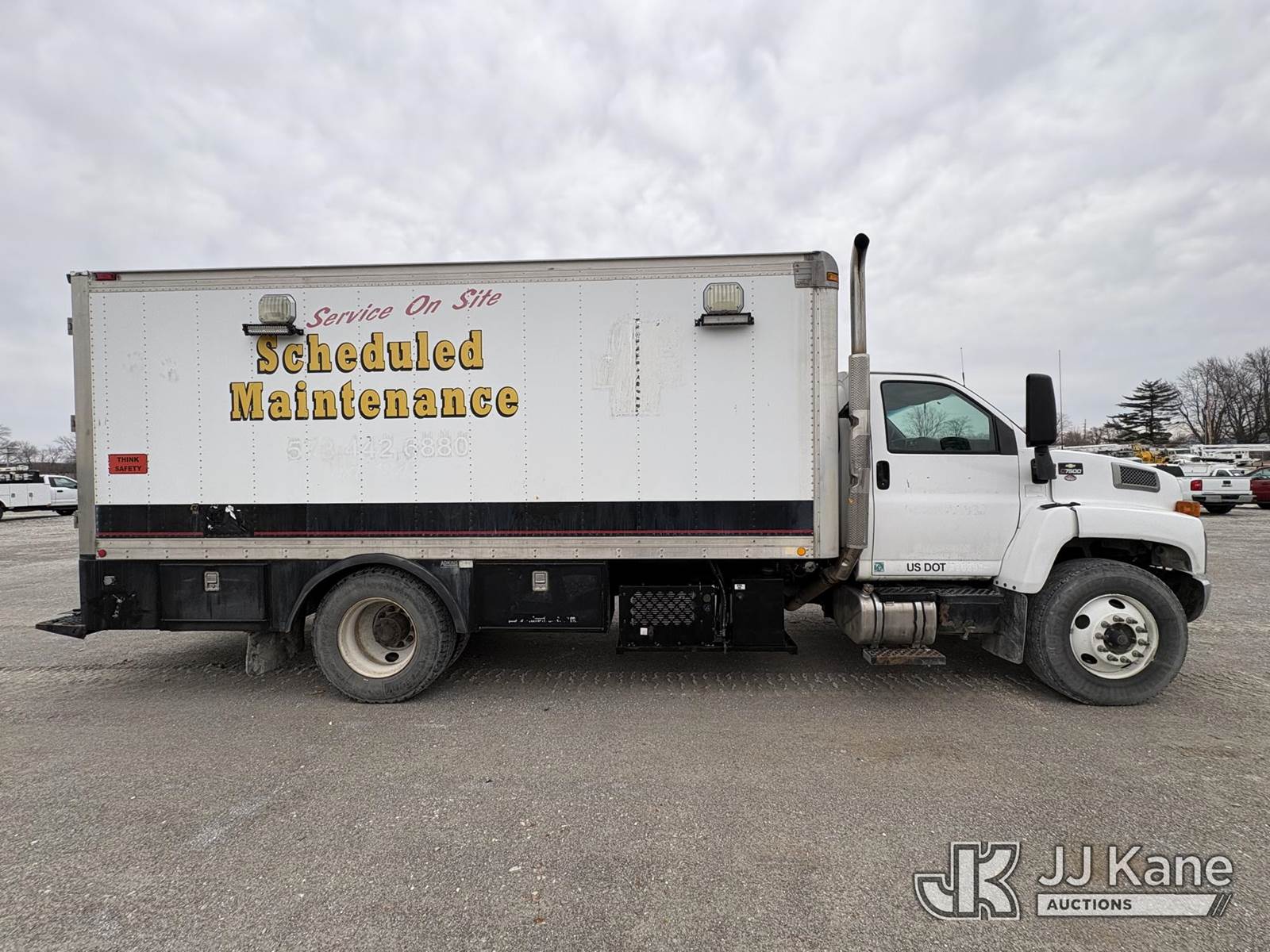 2005 Chevrolet C7C042 Lube Truck, 7.2L L6 TURBO DIESEL 4X2, manual, A/C, (Exempt from Odometer Disclosure - Reads 287,934 miles) (Starts with Jump, Runs, Moves, PTO engages) (minor paint damage & body damage, unknown operation of Lube reels) ) This is a Titled Item NOTE: This unit is being sold AS IS/WHERE IS via Timed Auction and is located in Hawk Point, MO. For more information & removal arrangements please contact Adam Stanek at 636-295-1594. (Buyer is responsible for removal. Assistance by consignor or JJ Kane Auctions is not assured.)