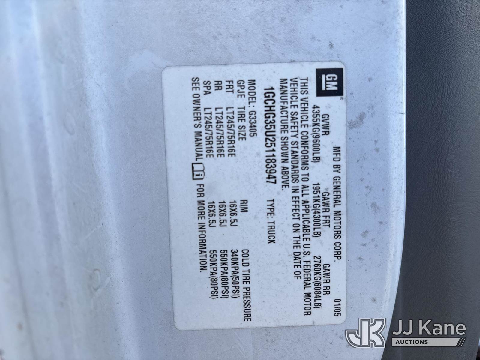 2005 Chevrolet Express G3500 Cargo Van, 6.0L V8 OHV 16V gas, 4-Speed Automatic, RWD, A/C, (Exempt from Odometer Disclosure - Reads 95,697 miles) (Runs & Moves) (Body/Paint/Rust Damage) (TITLE DELAY) This is a Titled Item NOTE: This unit is being sold AS IS/WHERE IS via Timed Auction and is located in Chester, VA. Inspection & preview days for this unit are the 2 business days prior to the first day of items closing for this auction, item is located at 13301 Great Coastal Dr Chester, VA 23836 and hours of operations are 8a-4p. For pre-sale questions, please contact Chandler Blanton @ 804-807-4574. Sales Tax Collected Based on Residency Title To Come From Leasing Company In 30 Days(Buyer is responsible for removal. Assistance by consignor or JJ Kane Auctions is not assured.)