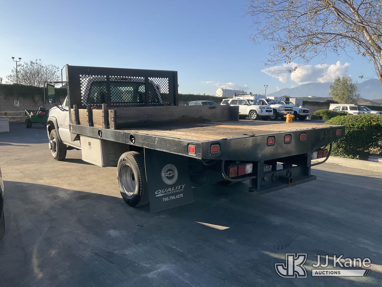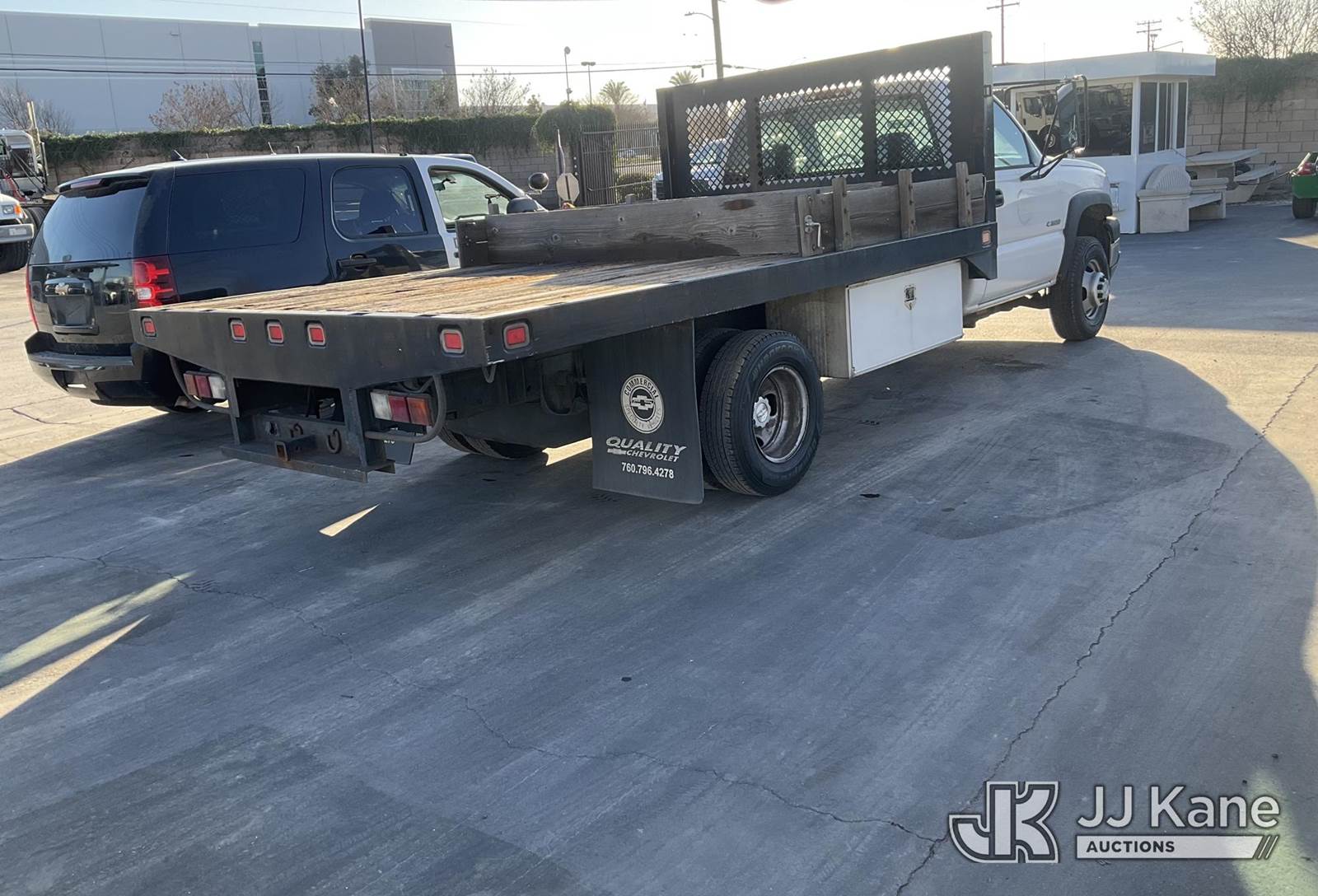 2005 Chevrolet Silverado 3500 Regular Cab 2WD Flatbed Truck, s/n 1GBJC34U45E326862, 6.0L V8 OHV 16V Gas, Auto, with Tow Package, Tool Boxes , (Exempt from Odometer Disclosure - Reads 137,728 miles) (Runs & Moves) (Fuel Gauge Does Not Function, No Horn) (Bidding Restricted to Licensed Vehicle Dealers Only), This is a Titled Item NOTE: This unit is being sold AS IS/WHERE IS via Timed Auction and is located in Jurupa Valley, CA. Inspection & preview days for this unit are the 2 business days prior to the first day of items closing for this auction, item is located at 4510 Muth Way Jurupa Valley, CA 92509 and hours of operations are 8a-4p. For pre-sale questions, please contact please contact Office Staff @ (310) 353-7140. Dealer License Number 45696. (Buyer is responsible for removal. Assistance by consignor or JJ Kane Auctions is not assured.)