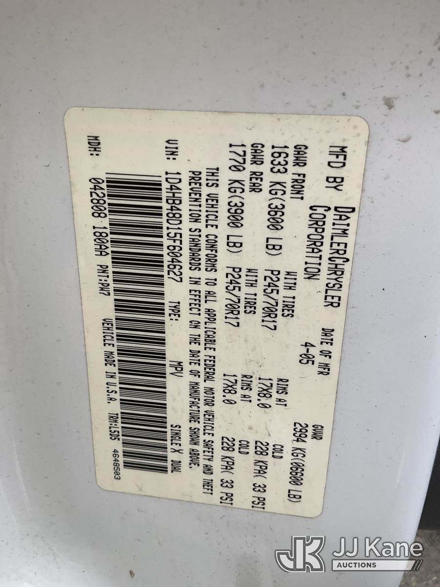2005 Dodge Durango 4x4 4-Door Sport Utility Vehicle, 8-cyl gas, Auto, A/C, (Exempt from Odometer Disclosure - Reads 90,943 miles) (Runs & Moves) This is a Titled Item NOTE: This unit is being sold AS IS/WHERE IS via Timed Auction and is located in Ocala, FL. Inspection & preview days for this unit are by appointment only; please contact us at contact@jjkane.com or 84-Go-JJKane for more details. For more information & removal arrangements please contact Mike Lessard @ (352) 629-6677. (Buyer is responsible for removal. Assistance by consignor or JJ Kane Auctions is not assured.)
