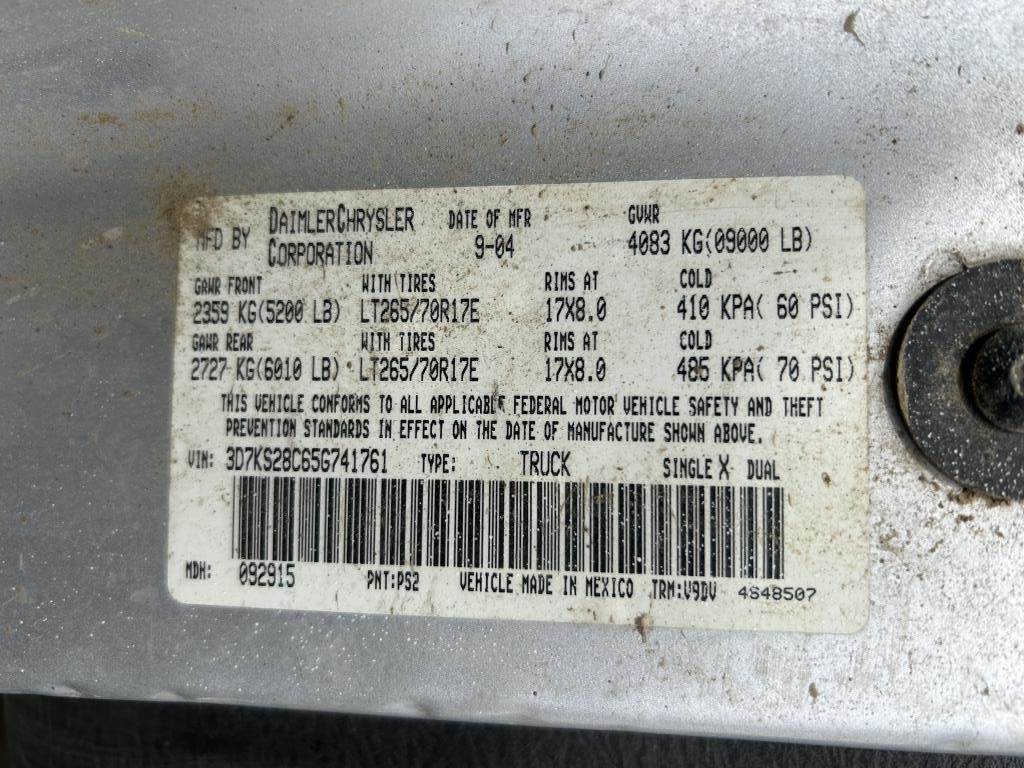 Location: Spokane WA ***End-User Consignment*** VIN: 3D7KS28C65G741761 Engine: Cummins 5.9L Turbo Diesel Transmission: Automatic 8'6" Fibre Body utility body w/6 compartments, Onan generator, Puregas air compressor, transfer tank w/15GPM 12 volt pump, running boards, ball hitch, power windows, power mirrors, power locks, power inverter, cruise control, A/C, AM/FM/CD, spring suspension, LT235/80R17 tires. Miles: 350,065