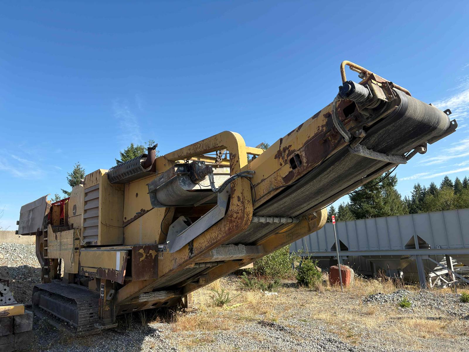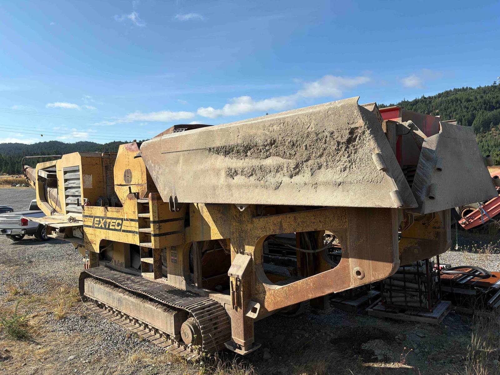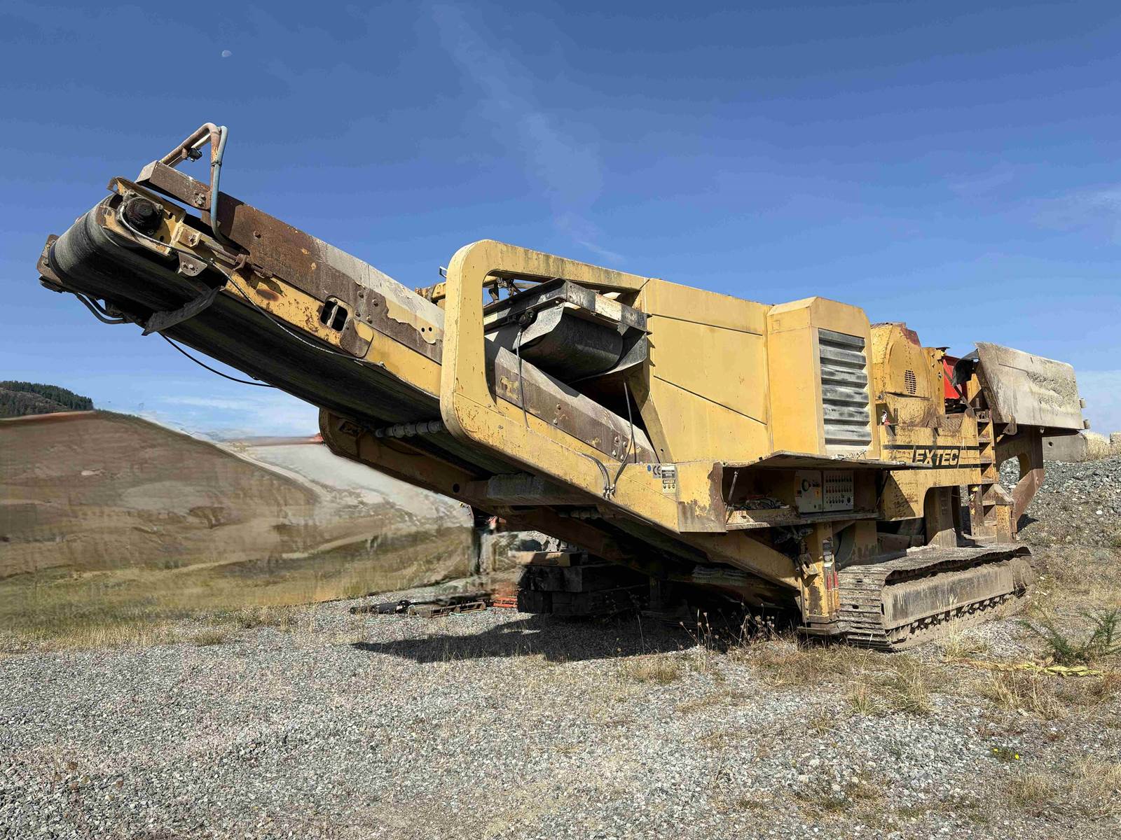 2005 Extec C12 Track Jaw Crusher - Very Low hours, very good condition’ - Under 5,400 hours - 26” x 44” Jaw opening - Local style Heavy Duty Jaw Plates. Jaw & Cheek plates in very good condition - Hydraulic adjustment for jaw opening size - Less than 1,000 hours on new Heavy duty vibrating grizzly feeder c/w hard surfacing - Feed Hopper with hydraulic wing walls - Deutz Diesel Engine turbocharged, 365 HP - 40” main discharge conveyor - Crossbelt Magnet - Hydraulically operated jacking legs