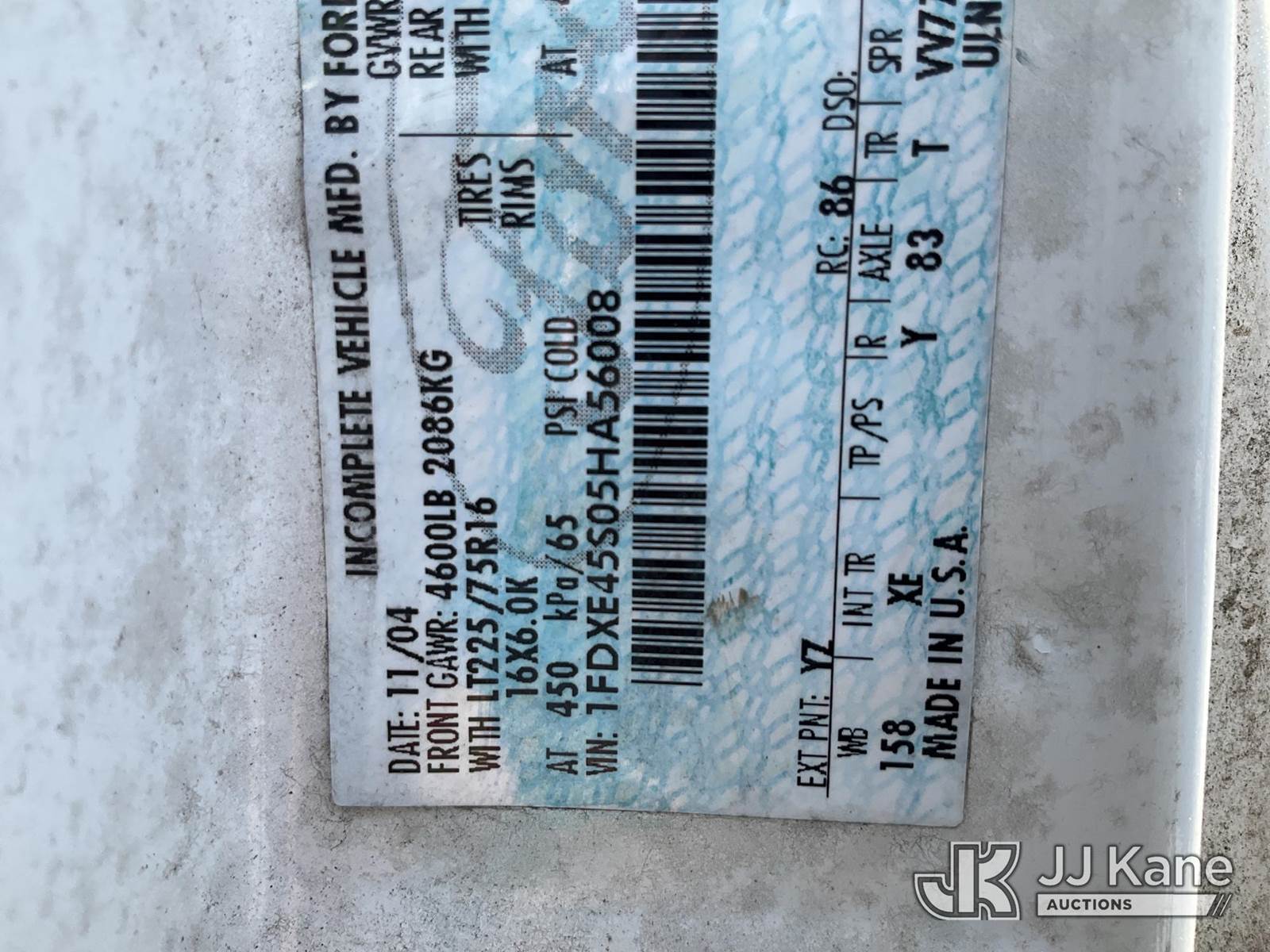 2005 Ford E-450 Passenger Bus, 10-cyl gas, RWD, Auto, A/C, True Mileage Unknown (Not Running, Condition Unknown, Inside Disassembled, Missing Ignition) This is a Titled Item NOTE: This unit is being sold AS IS/WHERE IS via Timed Auction and is located in Villa Rica, GA. Inspection & preview days for this unit are the 2 business days prior to the first day of items closing for this auction, item is located at 100 Liberty Rd Villa Rica, GA 30180 and hours of operations are 8a-4p. For pre-sale questions, please contact Office Staff @ (470) 590-8453. (Buyer is responsible for removal. Assistance by consignor or JJ Kane Auctions is not assured.)