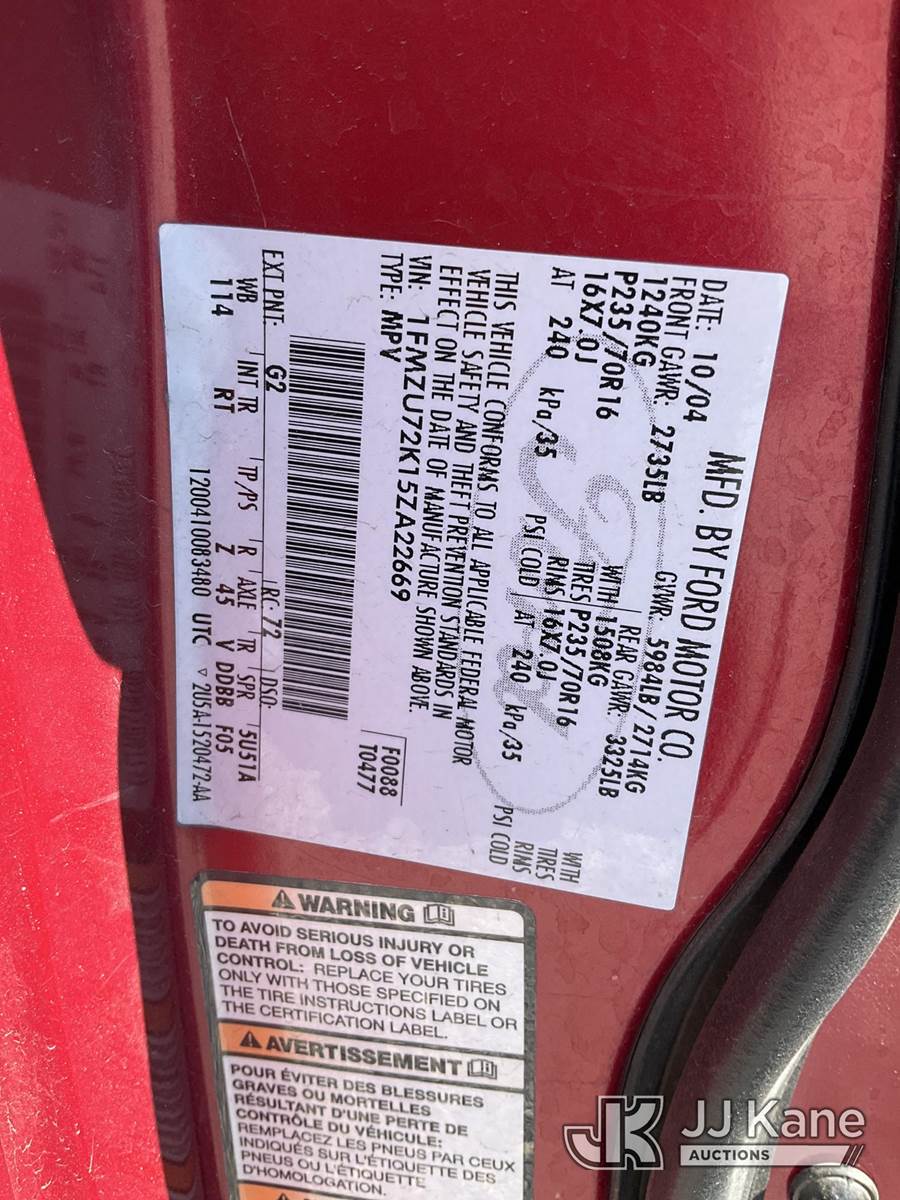 2005 Ford Explorer 4x4 4-Door Sport Utility Vehicle, 6-cyl gas, Auto, A/C, (Exempt from Odometer Disclosure - Reads 74,827 miles) (Runs & Moves) (Service Engine Soon Light On, Paint Damage) This is a Titled Item NOTE: This unit is being sold AS IS/WHERE IS via Timed Auction and is located in Las Vegas, NV. Inspection & preview days for this unit are the 2 business days prior to the first day of items closing for this auction, item is located at 14655 Grand Valley Pkwy Las Vegas, NV 89165 and hours of operations are 8a-4p. Titles executed exactly as bidder registered. Ensure your name and/or business name and address in JJ Kane and/or ProxiBid is correct before bidding. For pre-sale questions, please contact Office Staff @ (801) 519-0123 and provide sale date and lot number. Las Vegas Dealer License Number DLR000053086 / OHV000053094. (Buyer is responsible for removal. Assistance by consignor or JJ Kane Auctioneers is not assured.)