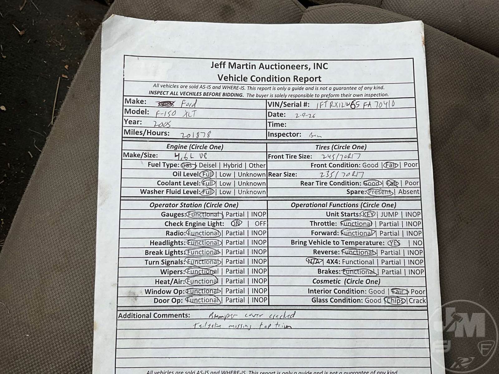 XLT EXTENDED CAB 4X2 PICKUP, 8 CYL, GAS ENGINE, AUTOMATIC TRANSMISSION, CRUISE, AC/HEAT, CLOTH INTERIOR, BED LINER, ODOMETER READS: 201878, ***CHECK ENGINE LIGHT ON***