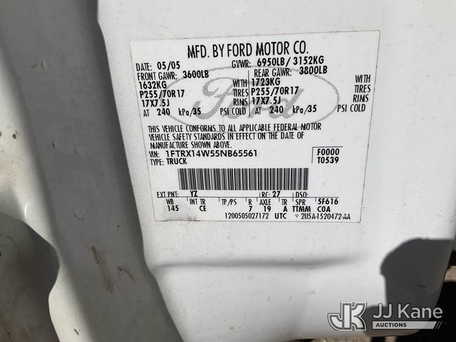 2005 Ford F-150 Extended-Cab Pickup Truck, 8-cyl gas, 4wd, 4-Speed Automatic, A/C, (Exempt from Odometer Disclosure - Reads 160,105 miles) (Runs & Moves) (ABS Light On, Hail Damage On Hood) This is a Titled Item NOTE: This unit is being sold AS IS/WHERE IS via Timed Auction and is located in Wichita, KS. Inspection & preview days for this unit are by appointment only; please contact us at contact@jjkane.com or 84-Go-JJKane for more details. (Buyer is responsible for removal. Assistance by consignor or JJ Kane Auctions is not assured.)