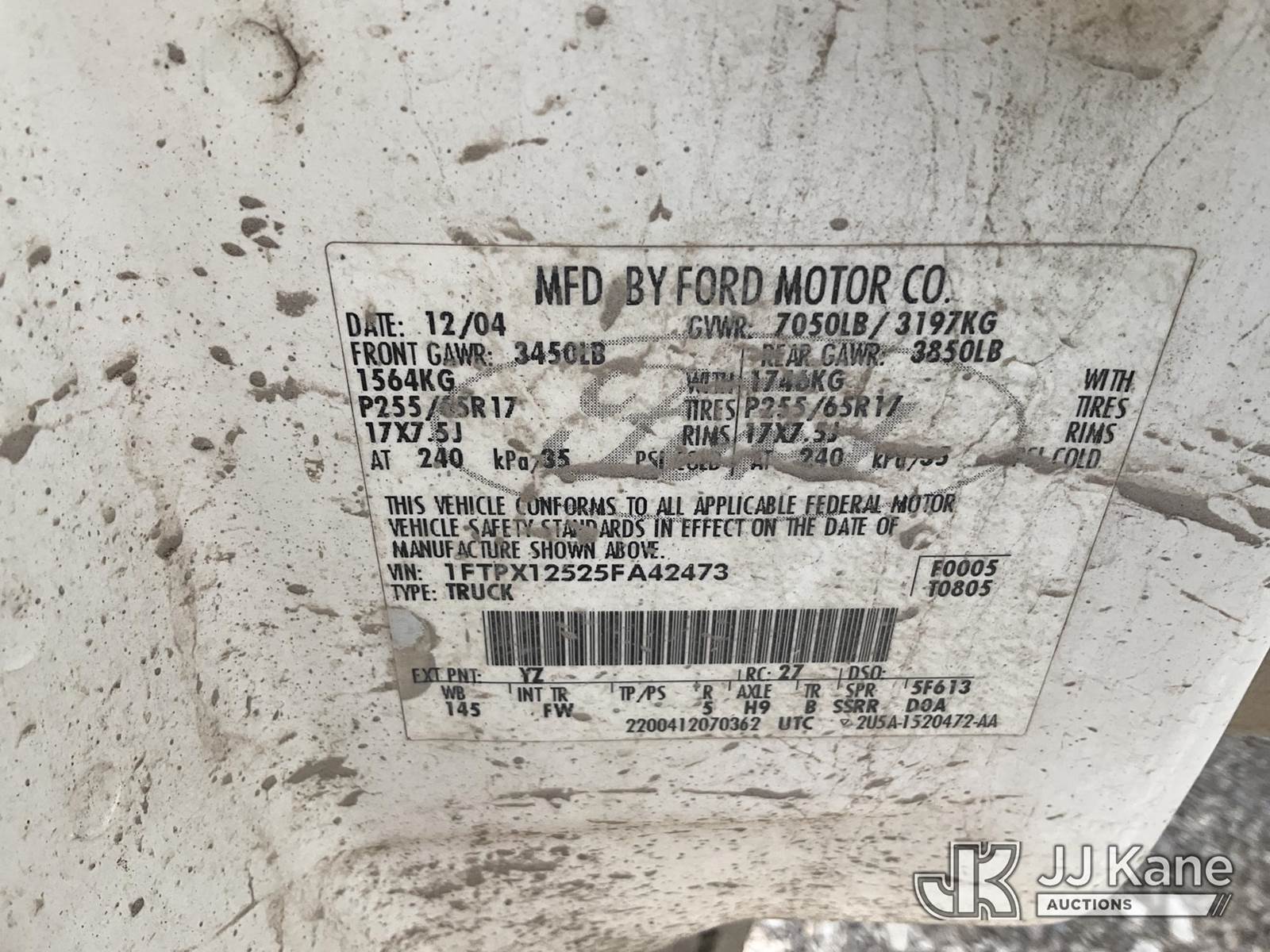 2005 Ford F-150 Extended-Cab Pickup Truck, 8-cyl gas, RWD, Auto, A/C, (Exempt from Odometer Disclosure - Reads 128,355 miles) (Runs & Moves) (Broken Frame, Rust Damage, Driver Door Will Not Open From Inside, Cracked Windshield) This is a Titled Item NOTE: This unit is being sold AS IS/WHERE IS via Timed Auction and is located in Verona, KY. Inspection & preview days for this unit are the 2 business days prior to the first day of items closing for this auction, item is located at 2841 Verona-Mudlick Rd Ste B Verona, KY 41092 and hours of operations are 8a-4p. For pre-sale questions, please contact Office Staff @ (502) 612-5080. Auctioneer Michael Whitebread / License # 256617. (Buyer is responsible for removal. Assistance by consignor or JJ Kane Auctions is not assured.)