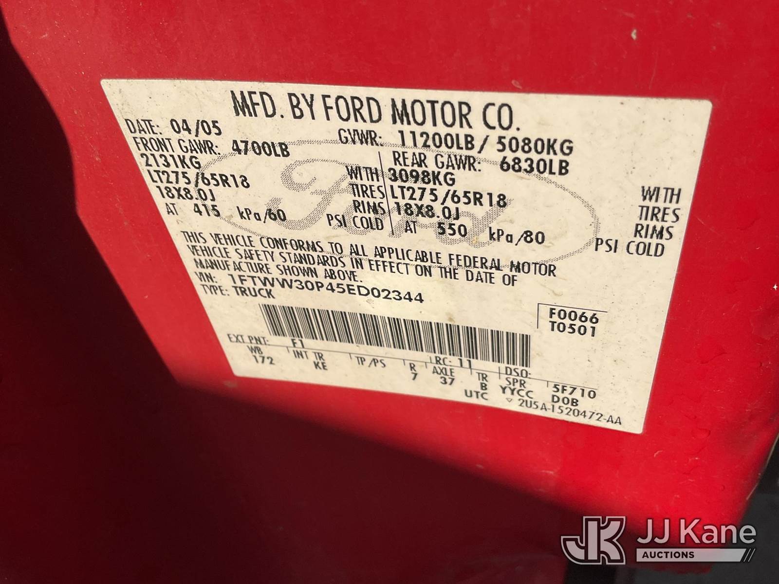 2005 Ford F-350 SD Crew-Cab Pickup Truck, 6.0L Turbo Diesel 5-Speed Automatic, A/C, with Tow package, (Exempt from Odometer Disclosure - Reads 223,741 miles) (Runs & Moves) (Has Blowby, Smoking Under Engine, Engine Light On) (Bidding Restricted to Licensed Vehicle Dealers Only), May be subject to ARB Regulations This is a Titled Item NOTE: This unit is being sold AS IS/WHERE IS via Timed Auction and is located in Jurupa Valley, CA. Inspection & preview days for this unit are the 2 business days prior to the first day of items closing for this auction, item is located at 4510 Muth Way Jurupa Valley, CA 92509 and hours of operations are 8a-4p. For pre-sale questions, please contact please contact Office Staff @ (310) 353-7140. Dealer License Number 45696. (Buyer is responsible for removal. Assistance by consignor or JJ Kane Auctions is not assured.)