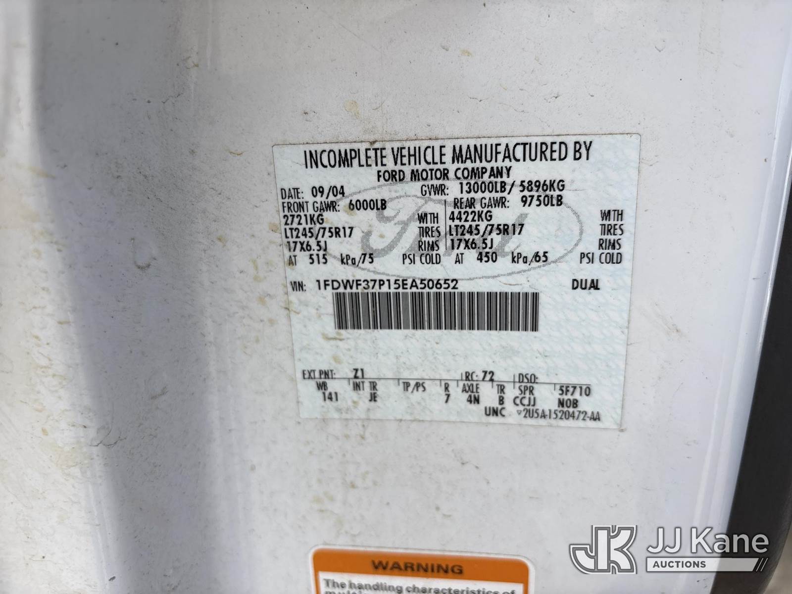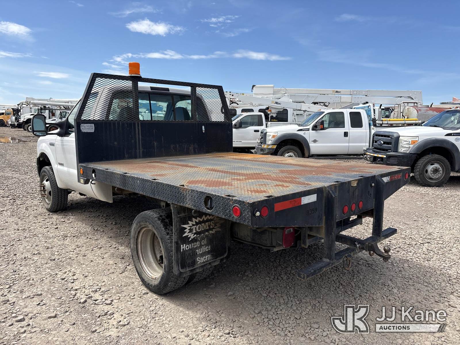 2005 Ford F-350 SD Flatbed Truck, s/n 1FDWF37P15EA50652, 6.0L V8 OHV 32V 4WD, DIESEL, Auto, A/C, with Deck Dimensions Length 9ft Width 8ft, (Exempt from Odometer Disclosure - Reads 87,698 miles) (Runs & Moves) This is a Titled Item NOTE: This unit is being sold AS IS/WHERE IS via Timed Auction and is located in Dixon, CA. Inspection & preview days for this unit are the 2 business days prior to the first day of items closing for this auction, item is located at 8668 Sparling Ln Dixon, CA 95620 and hours of operations are 8a-4p. For pre-sale questions, please contact JJ Kane Staff at (707) 678-8060 (dixon@jjkane.com). Dealer License Number 45696. (Buyer is responsible for removal. Assistance by consignor or JJ Kane Auctions is not assured.)