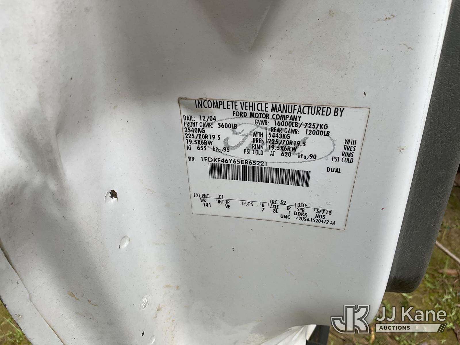 2005 Ford F-450 SD Dump Truck, 10-cyl gas, RWD, Auto, A/C, with Front grille guard, (Exempt from Odometer Disclosure - Reads 128,723 miles) (Runs & Moves, Operates) ( Check Engine Light Is On) This is a Titled Item NOTE: This unit is being sold AS IS/WHERE IS via Timed Auction and is located in Livingston, TX. For more information & removal arrangements please contact Charlie de Kanter @ (281) 910-7147. (Buyer is responsible for removal. Assistance by consignor or JJ Kane Auctions is not assured.)