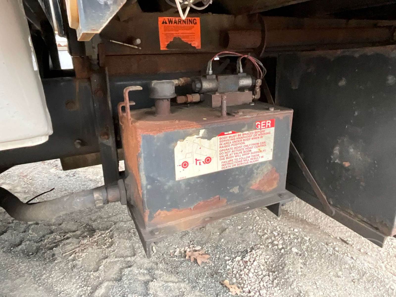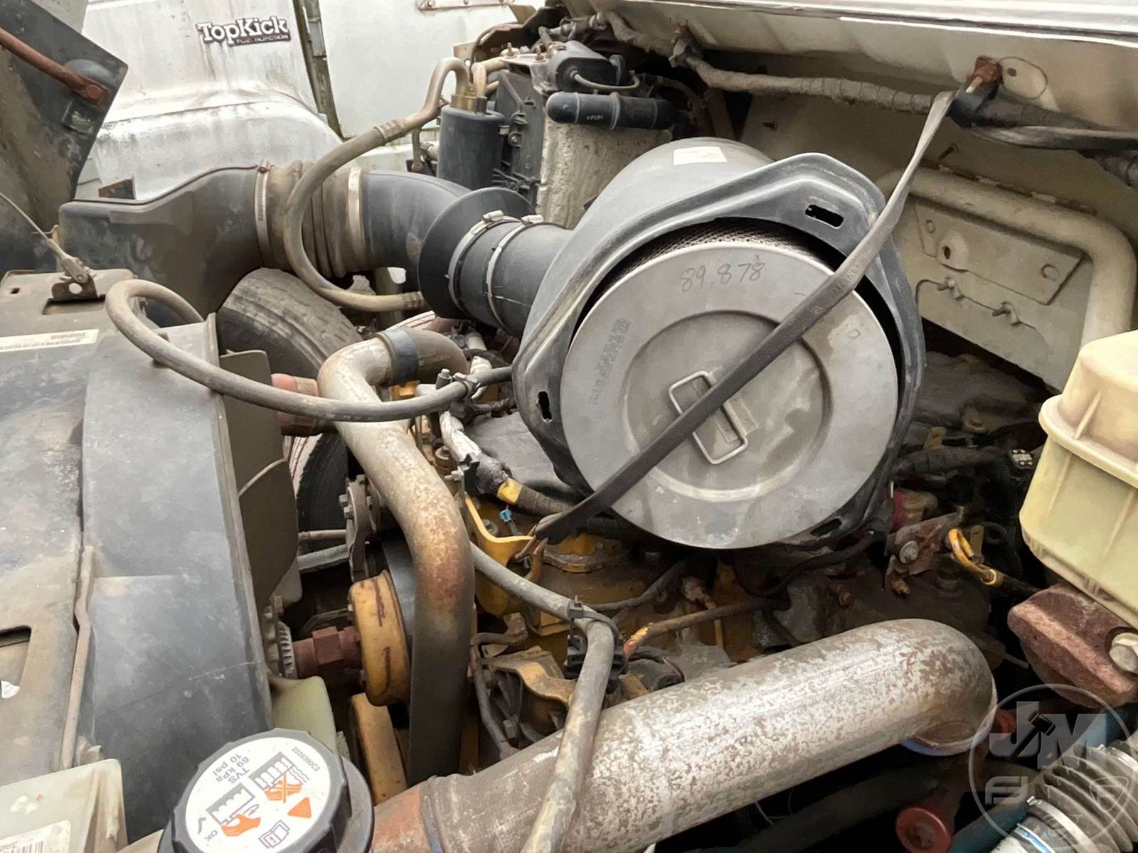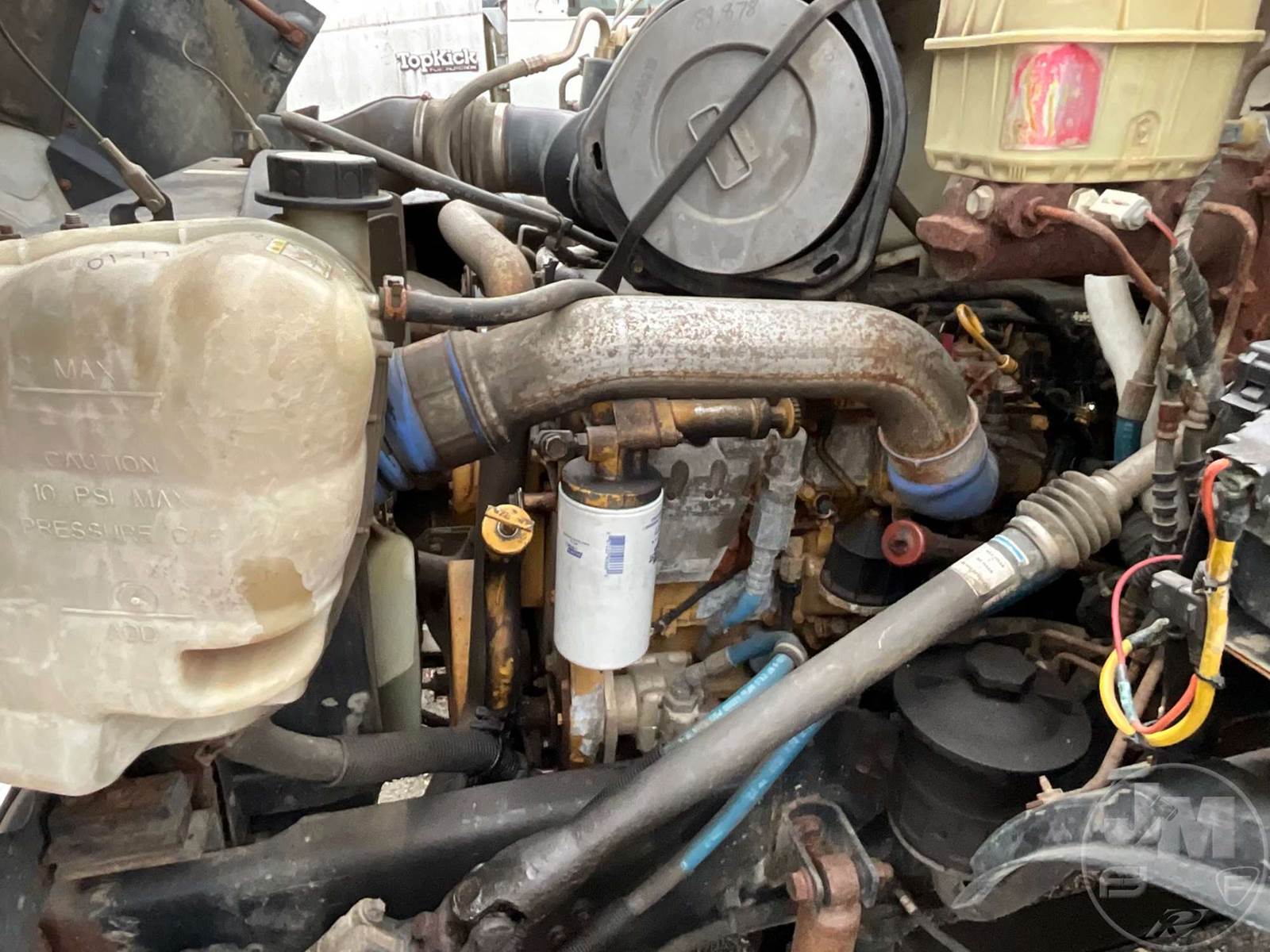S SINGLE AXLE DUMP TRUCK, CAT, AUTOMATIC, 2WD, SPRING RIDE SUSP, 175 WB, FRONTS 8500, REARS 17500, C/A: 100, SINGLE FRAME, DISC WHEELS, TIRES 11R22.5, ***INOP***, FOLD DOWN SIDES