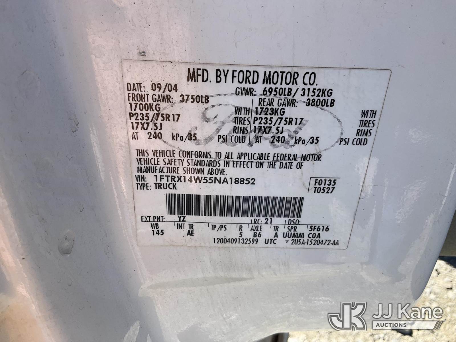 2005 Ford F150 4x4 Extended-Cab Pickup Truck, 8-cyl gas, Auto, A/C, (Exempt from Odometer Disclosure - Reads 270,518 miles) (Runs & Moves) (Check Engine Light On, Brake Light On, Paint/Body Damage) This is a Titled Item NOTE: This unit is being sold AS IS/WHERE IS via Timed Auction and is located in China Grove, NC. Inspection & preview days for this unit are the 2 business days prior to the first day of items closing for this auction, item is located at 820 E NC Hwy 152 China Grove, NC 28023 and hours of operations are 8a-4p. For pre-sale questions, please contact Office Staff @ (704) 674-1113. (Buyer is responsible for removal. Assistance by consignor or JJ Kane Auctions is not assured.)
