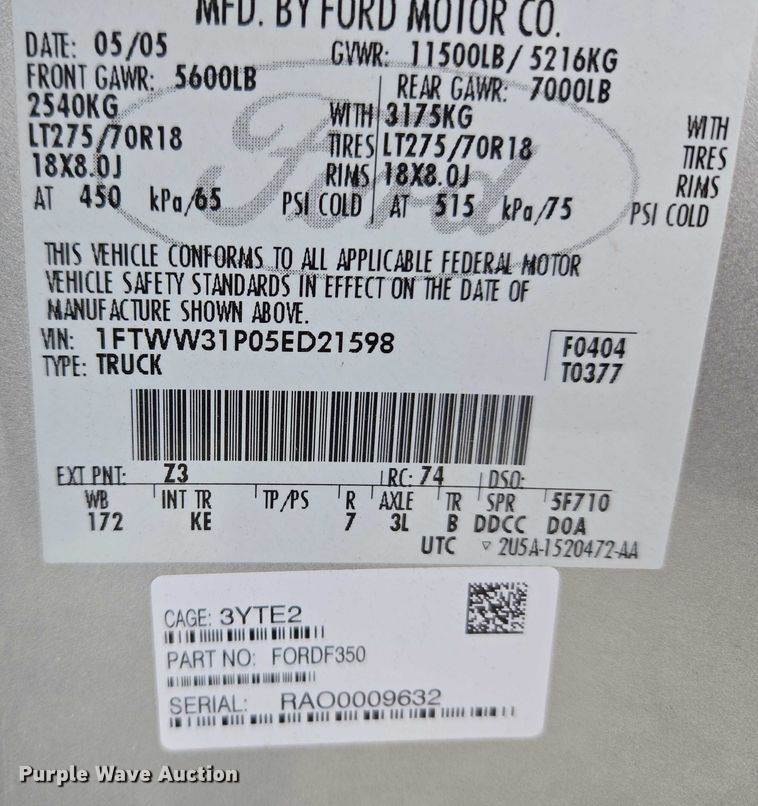 2005 Ford F250 XL Super Duty Ext. Cab Utility Bed Pickup Truck