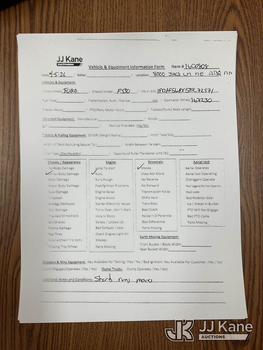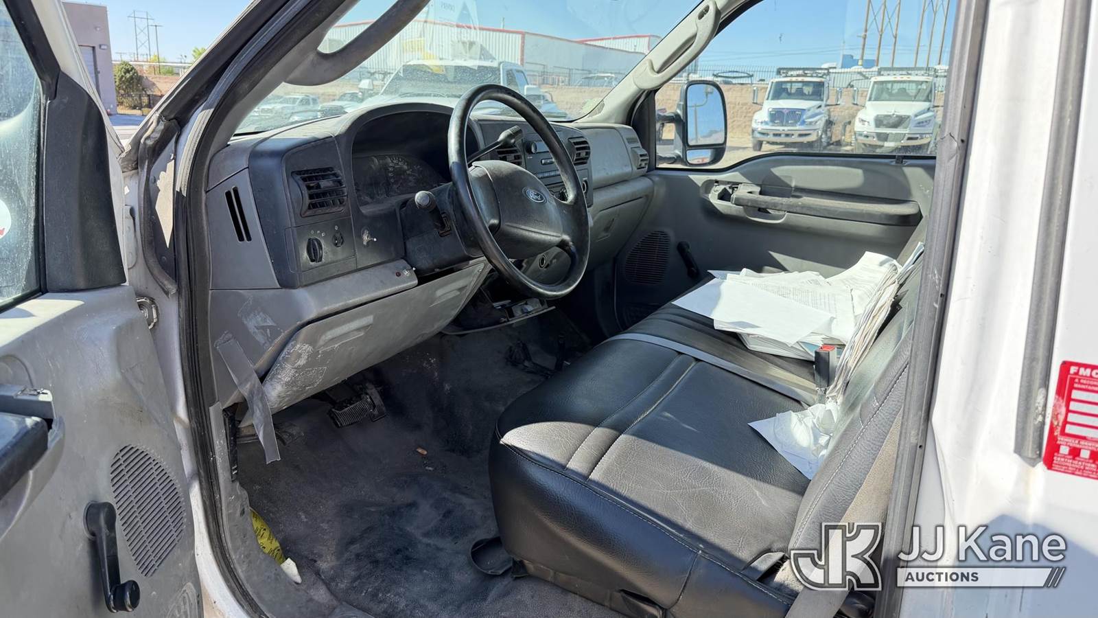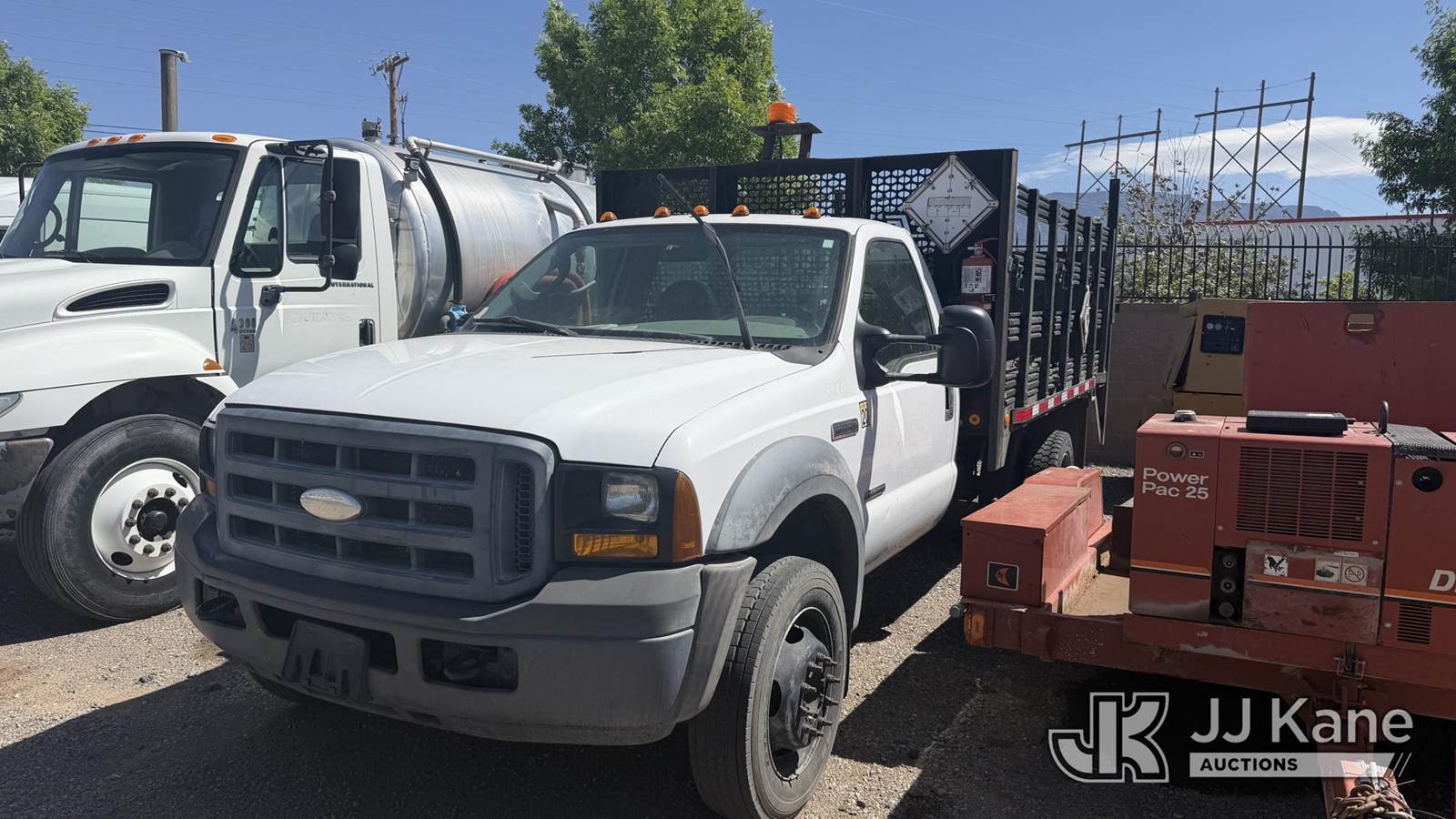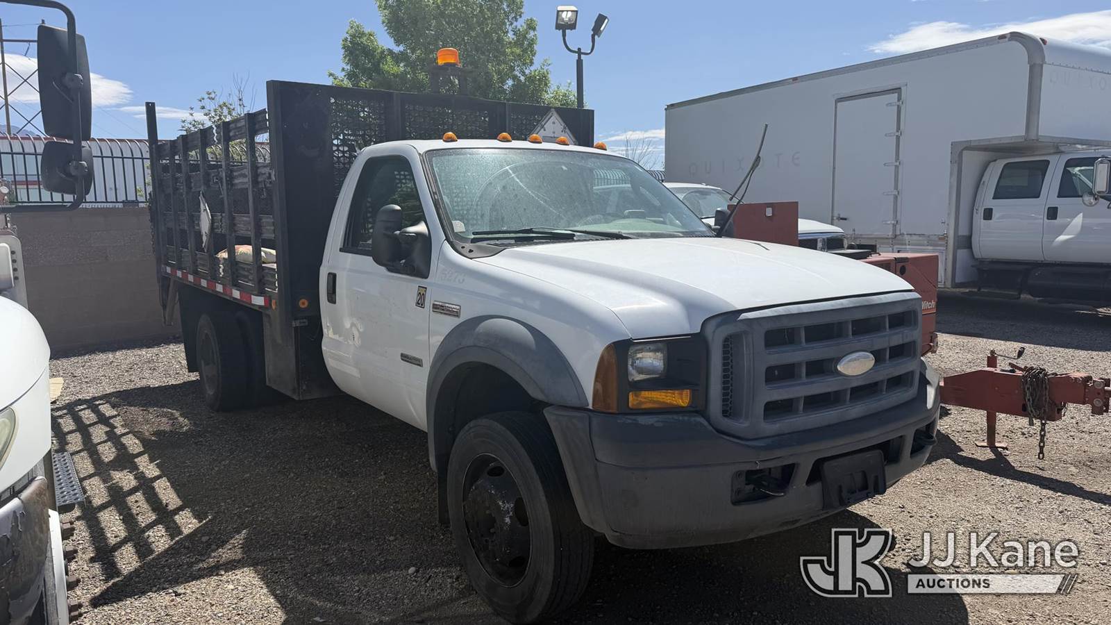 2005 Ford F550 Flatbed Truck, 6.0L V8 OHV 32V TURBO DIESEL, RWD, Auto, A/C, with lift gate & side stakes, (Exempt from Odometer Disclosure - Reads 167,230 miles) (Runs & Moves) (Body Damage) This is a Titled Item NOTE: This unit is being sold AS IS/WHERE IS via Timed Auction and is located in Albuquerque, NM. Inspection & preview days for this unit are by appointment only; please contact us at contact@jjkane.com or 84-Go-JJKane for more details. (Buyer is responsible for removal. Assistance by consignor or JJ Kane Auctions is not assured.)