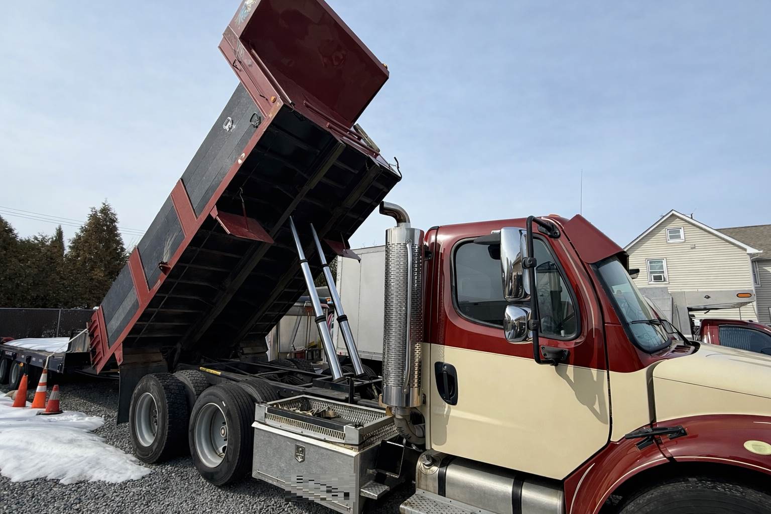 2005 Freightliner Dump Body- 280 HP Mercedes Diesel, Six Speed Manual Trans, 78,728 Miles on Meter!!!, GVWR- 52,000 LBS., Drop Axle, Aluminum Storage Tool Boxes, Spring Suspension, 16' Dump Body w/ Quarter Inch Steel Floor, Air Ride Seat, Backup Camera, Strobes, AIR TO REAR, Has Two Trailer Plugs, SUPER CLEAN TRUCK, CALL FOR MORE INFO!!!