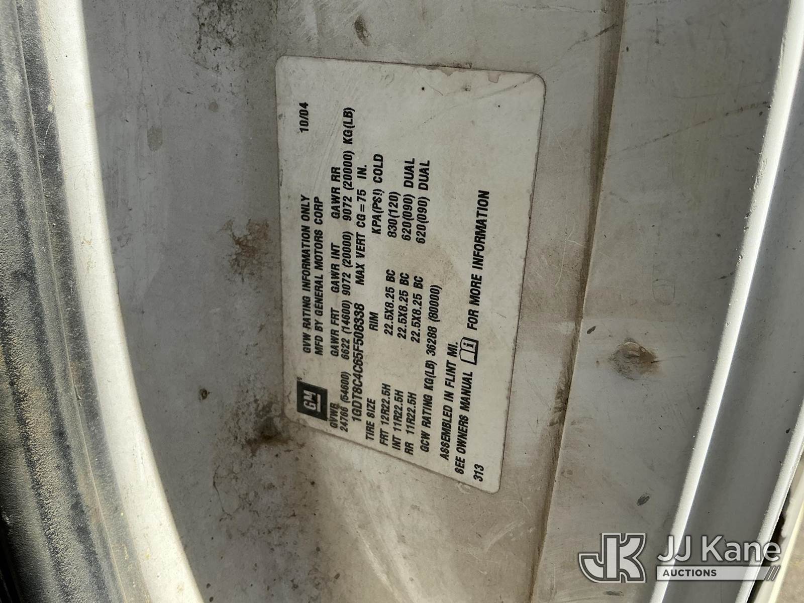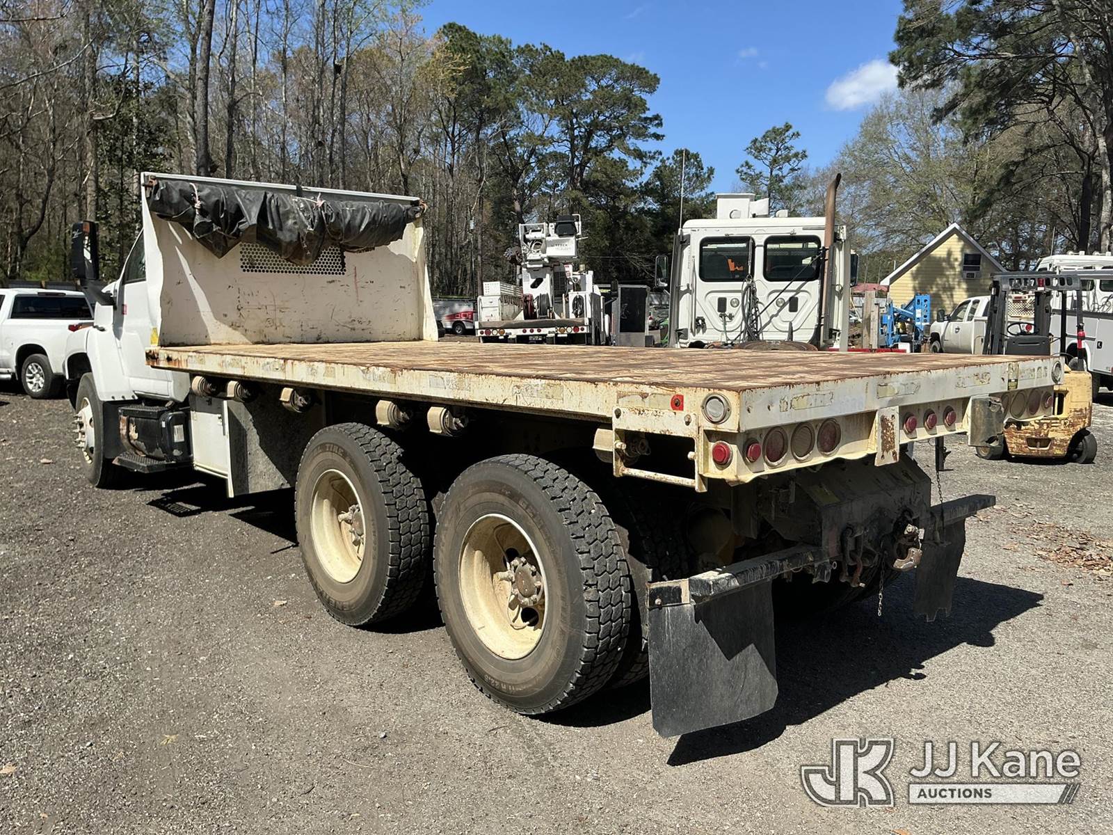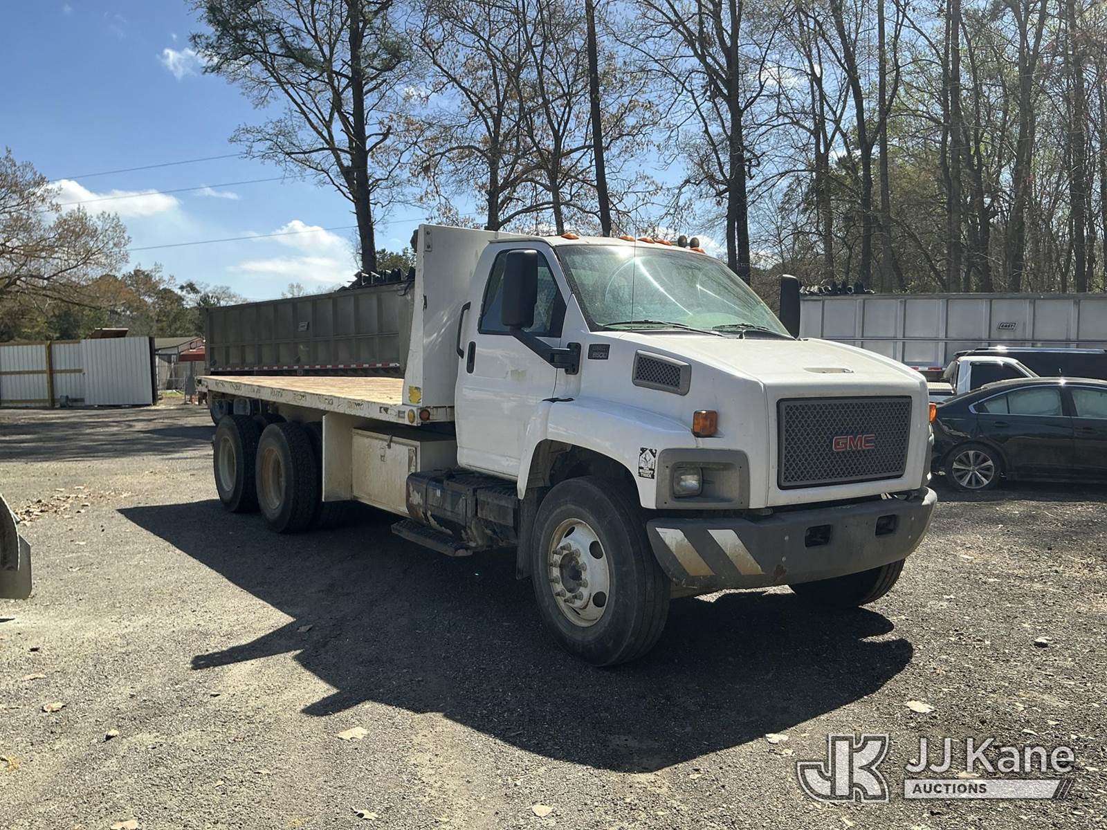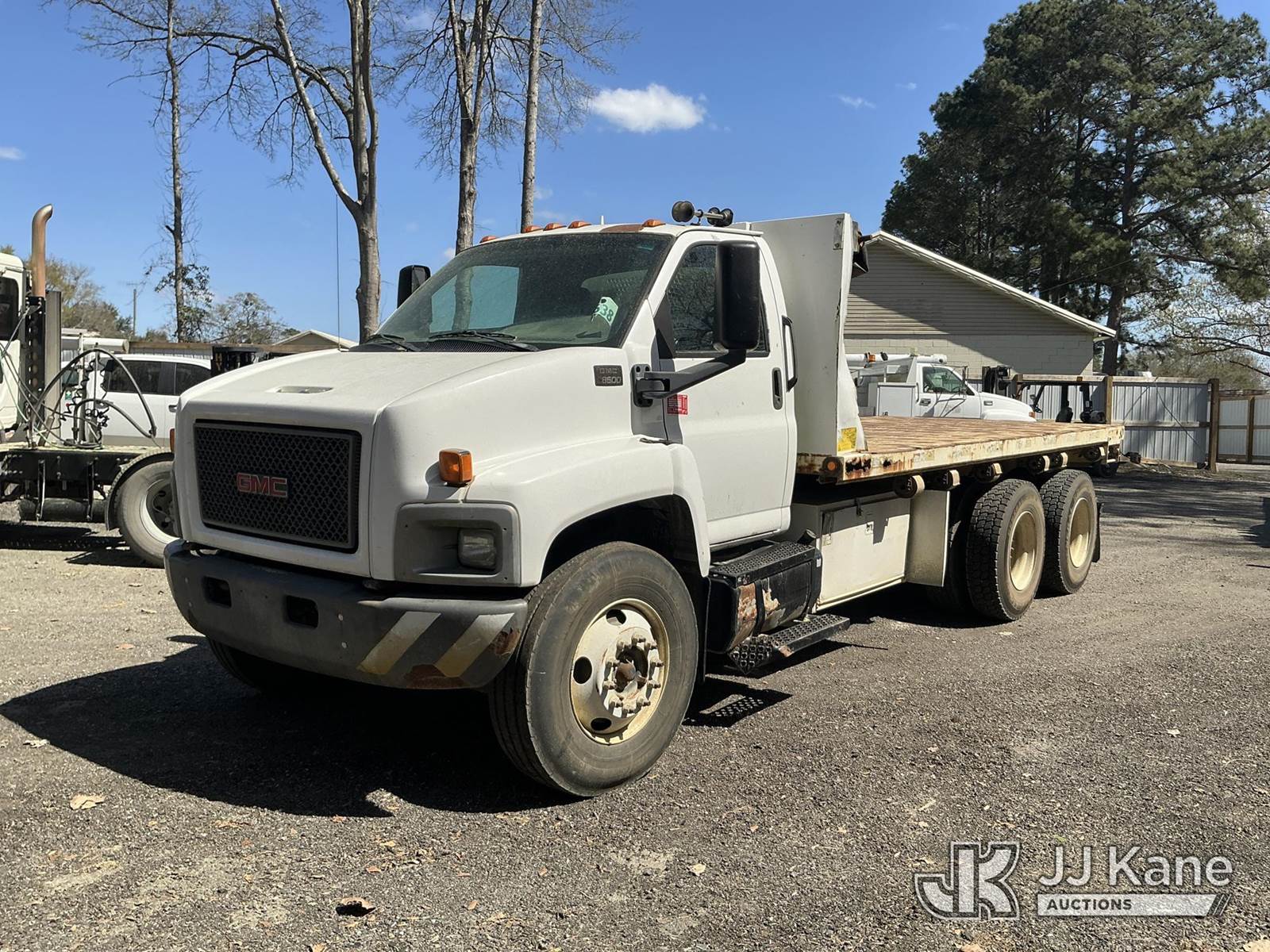 2005 GMC C8500 T/A Flatbed Truck, Cat 7.2L diesel, 6X4, Auto, A/C, with Adkins flatbed, 18ft long, 8 ft wide, (Exempt from Odometer Disclosure - Reads 69,589 miles) (Runs, Moves) (Rust Damage to Flatbed) This is a Titled Item NOTE: This unit is being sold AS IS/WHERE IS via Timed Auction and is located in Moncks Corner, SC. For more information & removal arrangements please contact Pete Klimek @ 843-323-6538. (Buyer is responsible for removal. Assistance by consignor or JJ Kane Auctions is not assured.)