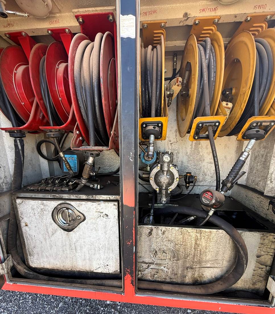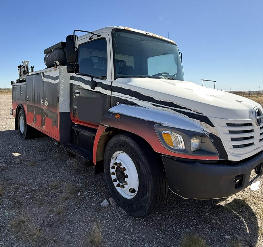 2005, Hino 268 Medium Duty Fuel Lube Service Truck, "NON CDL" , Miller Bobcat 230 Welder, Stellar service body, Stellar 3315 crane, 3200 lbs lift capacity, 234,285 miles, Hino 7.6L diesel, Allison automatic transmission, engine brake, fronts axle rating 10,000lbs, rear axle rating 19,000lbs, GVWR 25,950 lbs, NO DEF, NON CDL, Service Body with TOOLBOX DRAWERS, Stellar 3315 Crane, Air Compressor, call for more information.