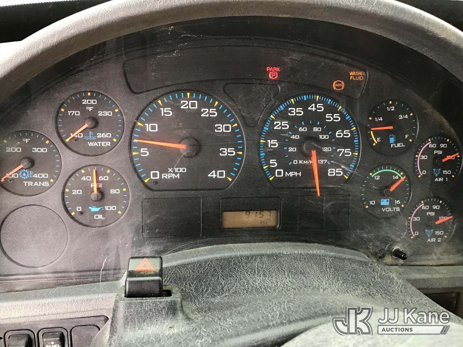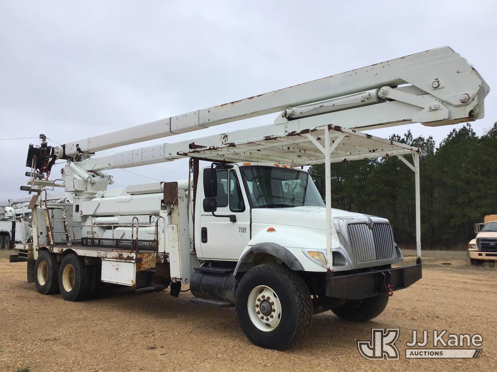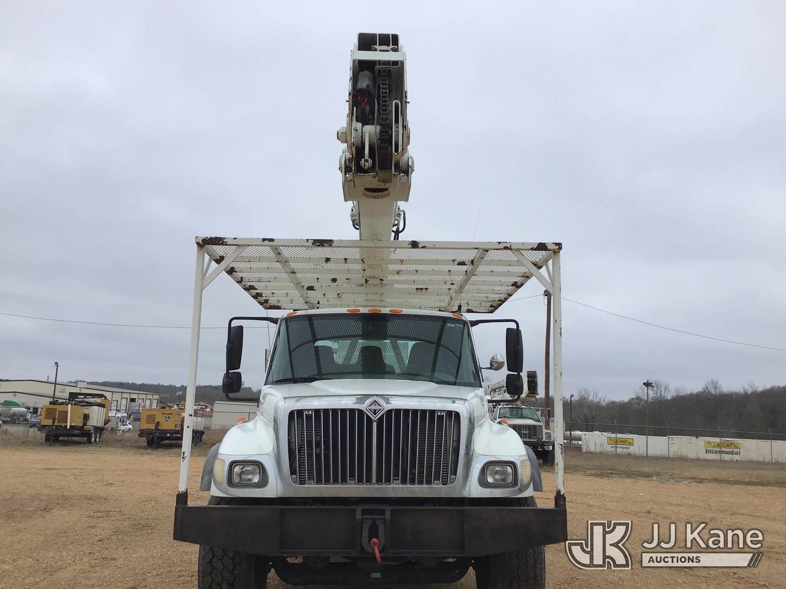 HiRanger RM6075-100, 105 ft, Double-Elevator Material Handling Bucket Truck s/n 2040924954, with two-man bucket & 4 hyd outriggers, rear mounted on 2005 International TA 7400 6x4 Utility Truck, s/n 1HTWGADT45J036990, 8.7L L6 diesel, 10-spd, A/C, (Exempt from Odometer Disclosure - Reads 43,712 miles) (Runs & Moves, Body Damage) (Per Seller: Upper Boom will Need Replaced, Do Not Operate, Hydraulic Upper Boom Lines Leak and Hole in Upper Boom), Upper Condition Unknown. Bucket Removed. (Strapped On Rear Of Bed), Bucket Covers Missing, Seat Torn, Headliner Loose, Speedometer Needle Needs Replaced) (Reads 9,150 hours) This is a Titled Item NOTE: This unit is being sold AS IS/WHERE IS via Timed Auction and is located in Byram, MS. Inspection & preview days for this unit are the 2 business days prior to the first day of items closing for this auction, item is located at 6033 I-55 S / W Frontage Rd Byram, MS 39272 and hours of operations are 8a-4p. Pre-sale questions, please contact @ (659) 278-7786 (Missing manuals, See Auction Company for Manufacturers Information to obtain manuals) (Buyer is responsible for removal. Assistance by consignor or JJ Kane Auctions is not assured.)