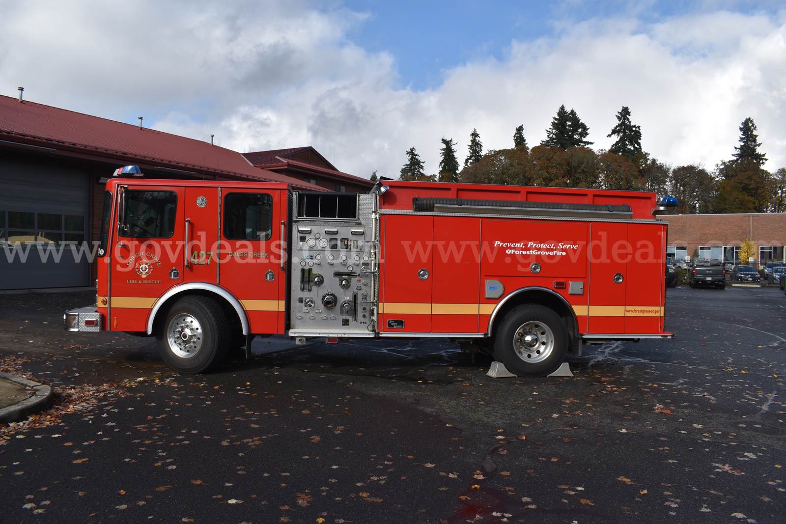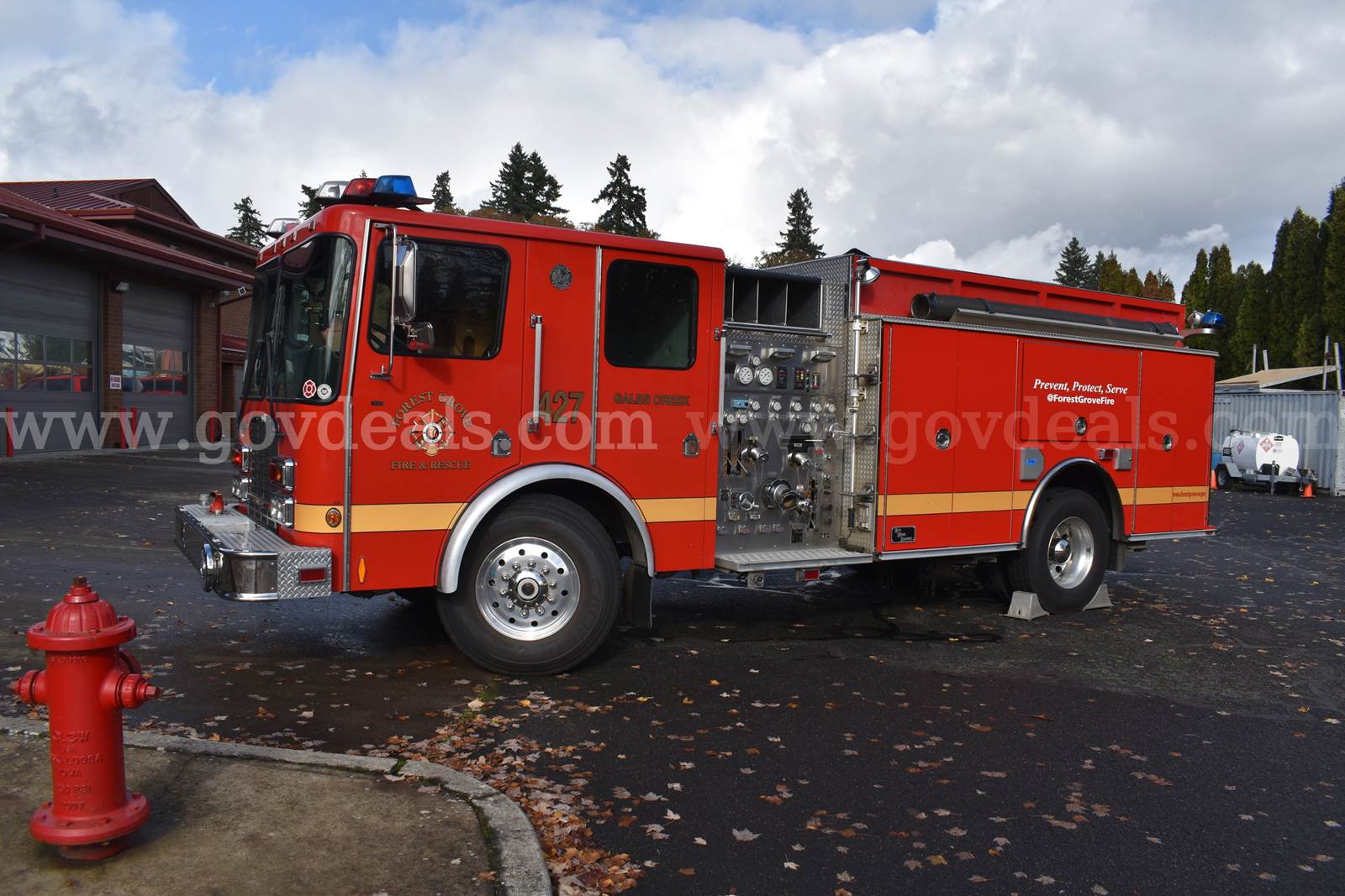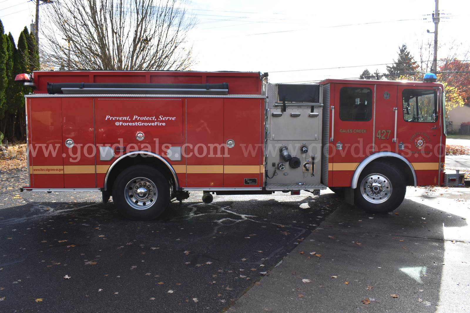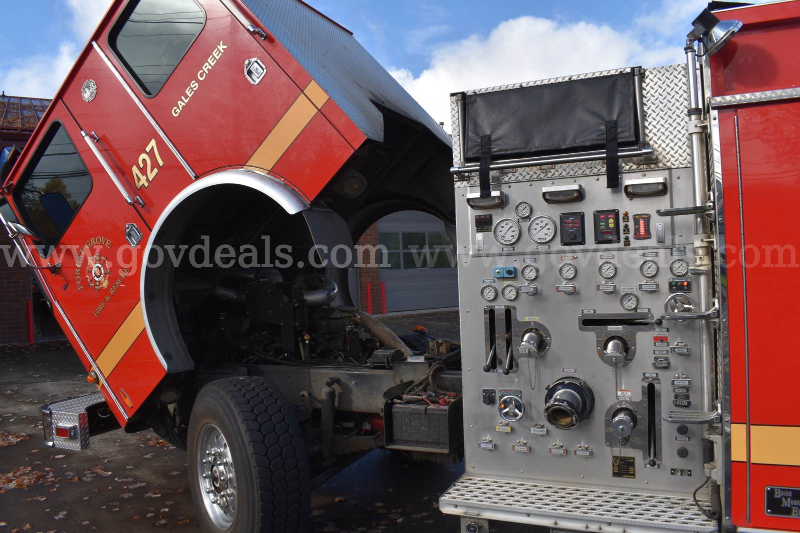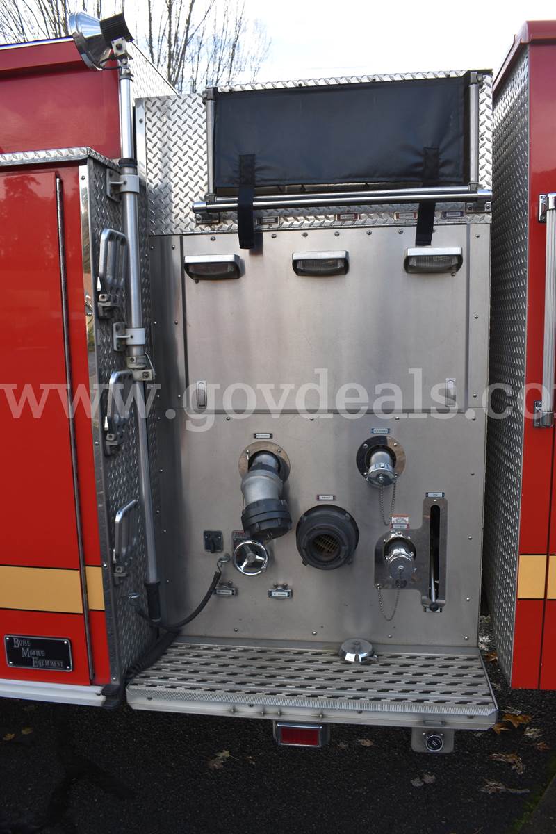 2005 HME/Boise Mobile Fire Engine HME 1871 SFO Cab with 4 seats (3 seats with SCBA mounts) Boise Mobile Equipment aluminum body Cummins ISL Engine Hale QFlow 1,250gpm Pump Auxiliary PTO Pump (pump and roll) 875 gallon water tank Sigtronics Headset Intercom system Engine Mileage: 45,676 Engine Hours: 1,526 Ladders included, 24ft extension (not pictured), 14ft roof, 10ft attic Hard suction NOT included On board electric air compressor OnSpot Tire Chain System Lift up side compartment need struts replaced. Sold as is, where is. **GovDeals.com is the online auction platform where you can bid on and buy government surplus**