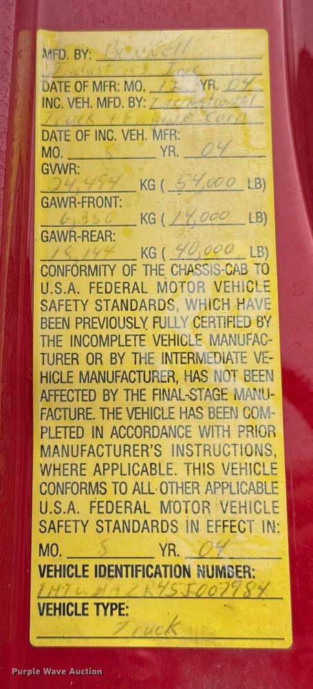 VIN: 1HTWHAZR45J007984