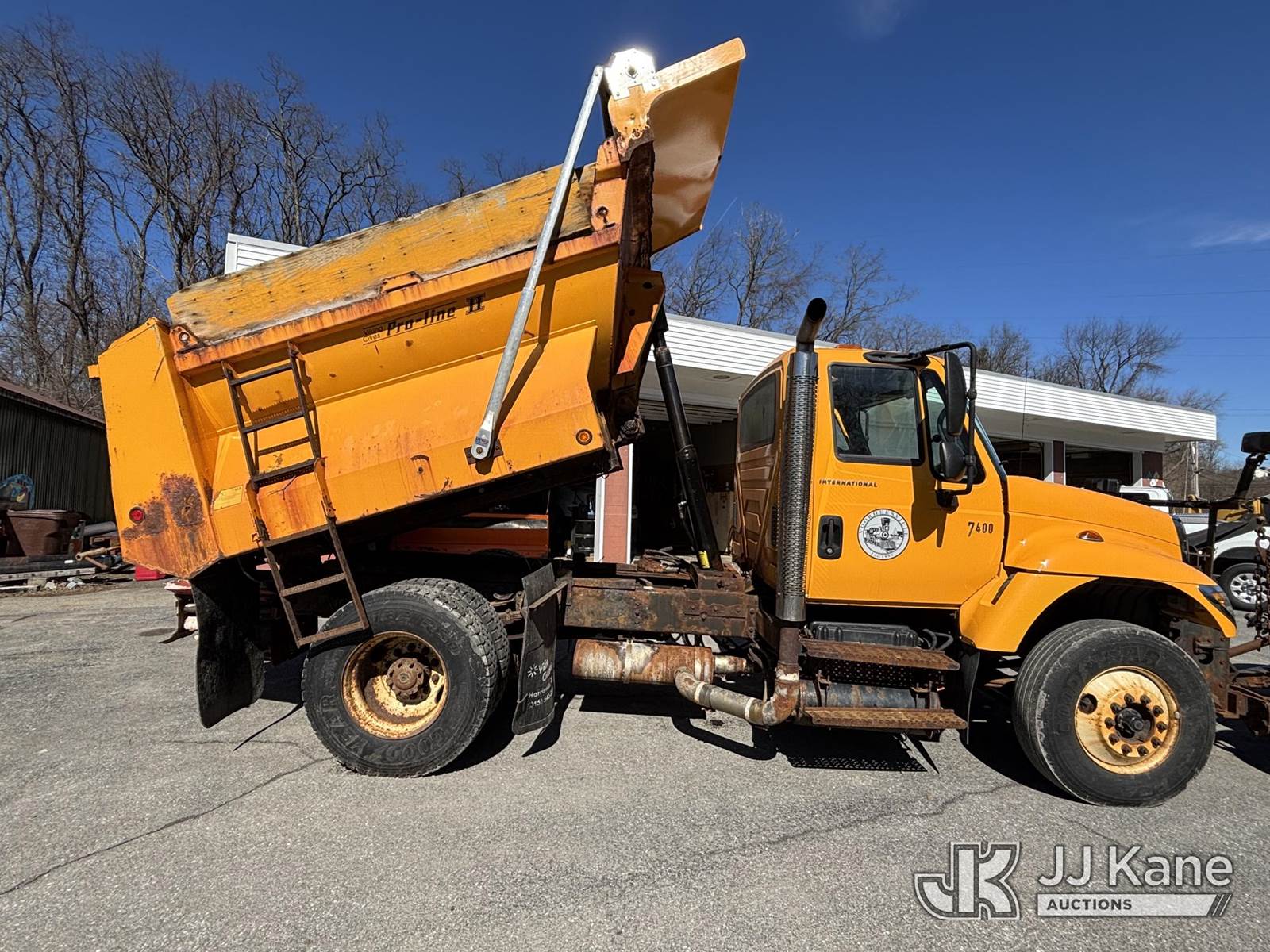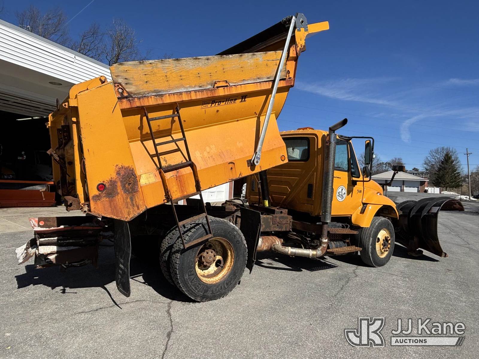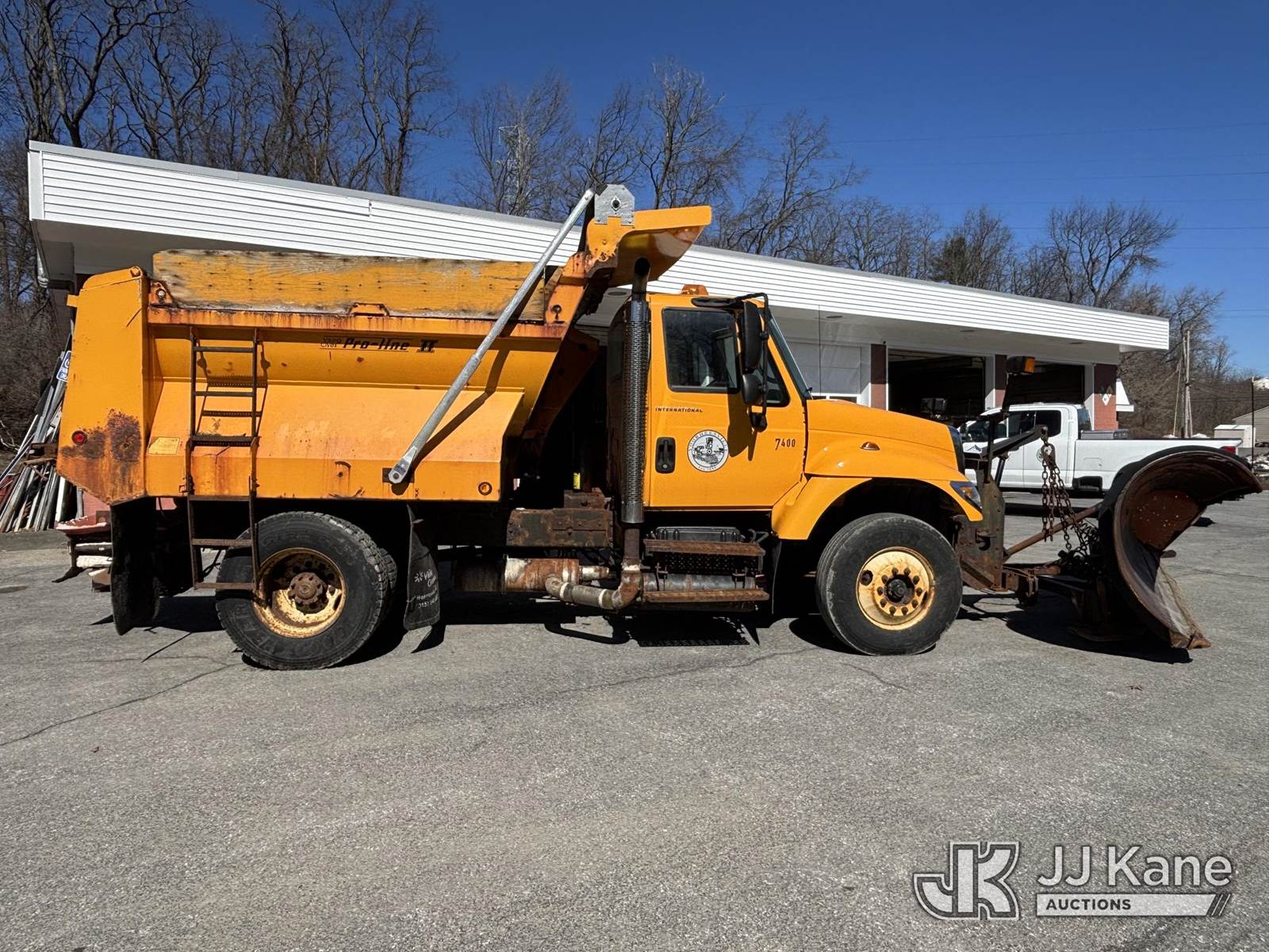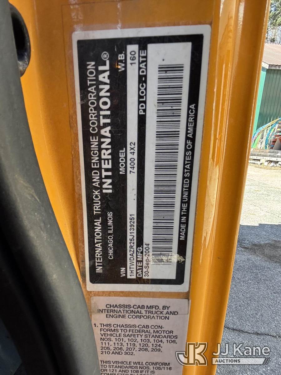 2005 International 7400 Dump Truck, 9.3L L6 Diesel, 4X2, Auto, A/C, with Tenco Snowplow & Viking Cives Proline II All Season Spreader/Dump Body, (Exempt from Odometer Disclosure - Reads 25,823 miles) (Runs, Moves & Operates, Salt Spreader Operates, Rust On Exposed Metal) This is a Titled Item NOTE: This unit is being sold AS IS/WHERE IS via Timed Auction and is located in Voorheesville, NY. For pre-sale questions, please contact Adel Cekic at adel.cekic@jjkane.com. Inspection by appointment only. Removal of items will begin the day following the sale and continue Monday through Friday, 8:00 am to 4:00 pm. Purchaser acknowledges ALL lots must be removed within (7) business days or a storage fee may be incurred. There will be no payments accepted onsite. Buyer/Hauler must present a copy of the (Paid in Full) Invoice or Release Form upon arrival. Please refer to the Pick Up Terms listed on the Release Form sent out after purchase. (Buyer is responsible for removal. Assistance by consignor or JJ Kane Auctions is not assured.)