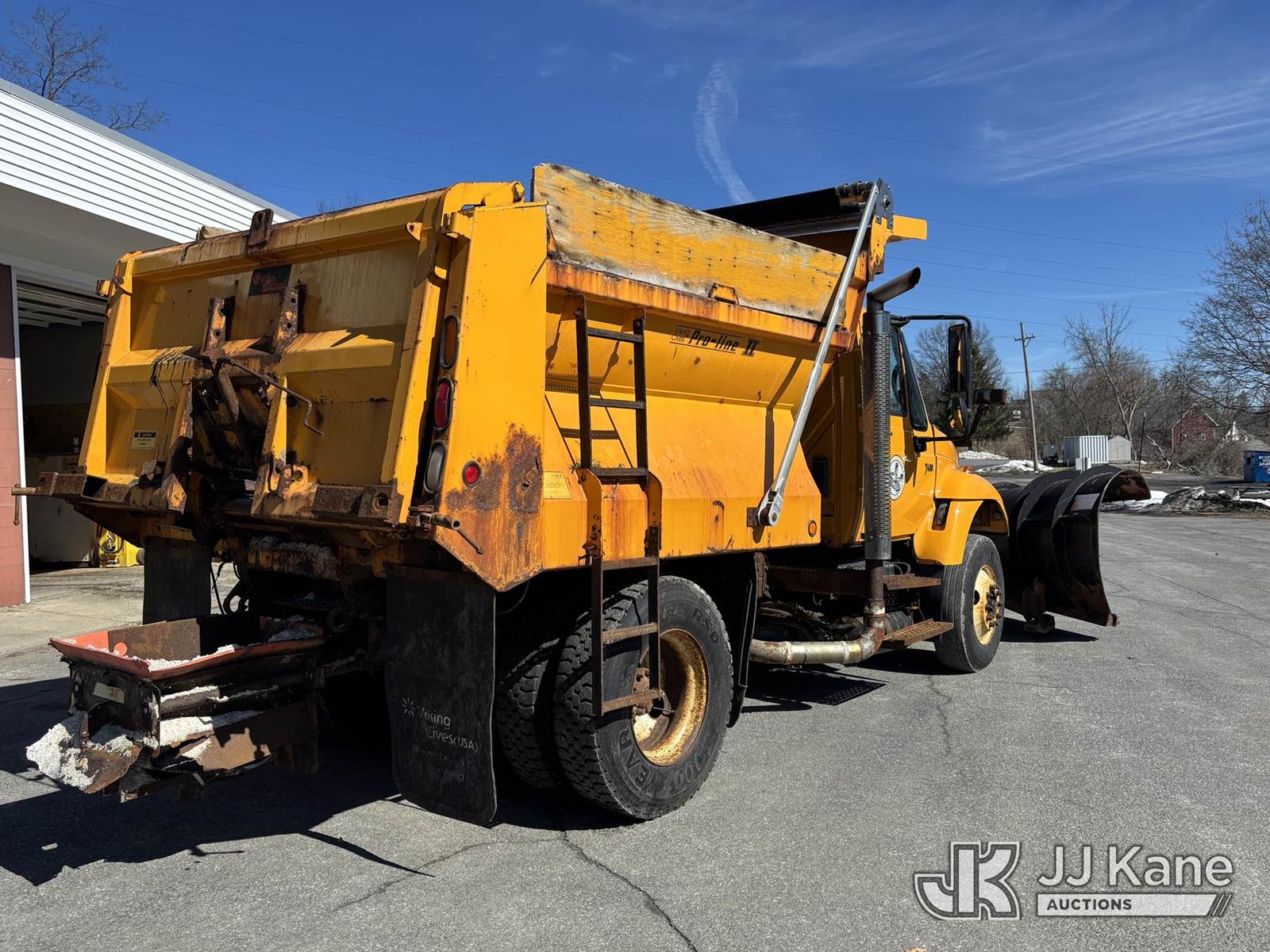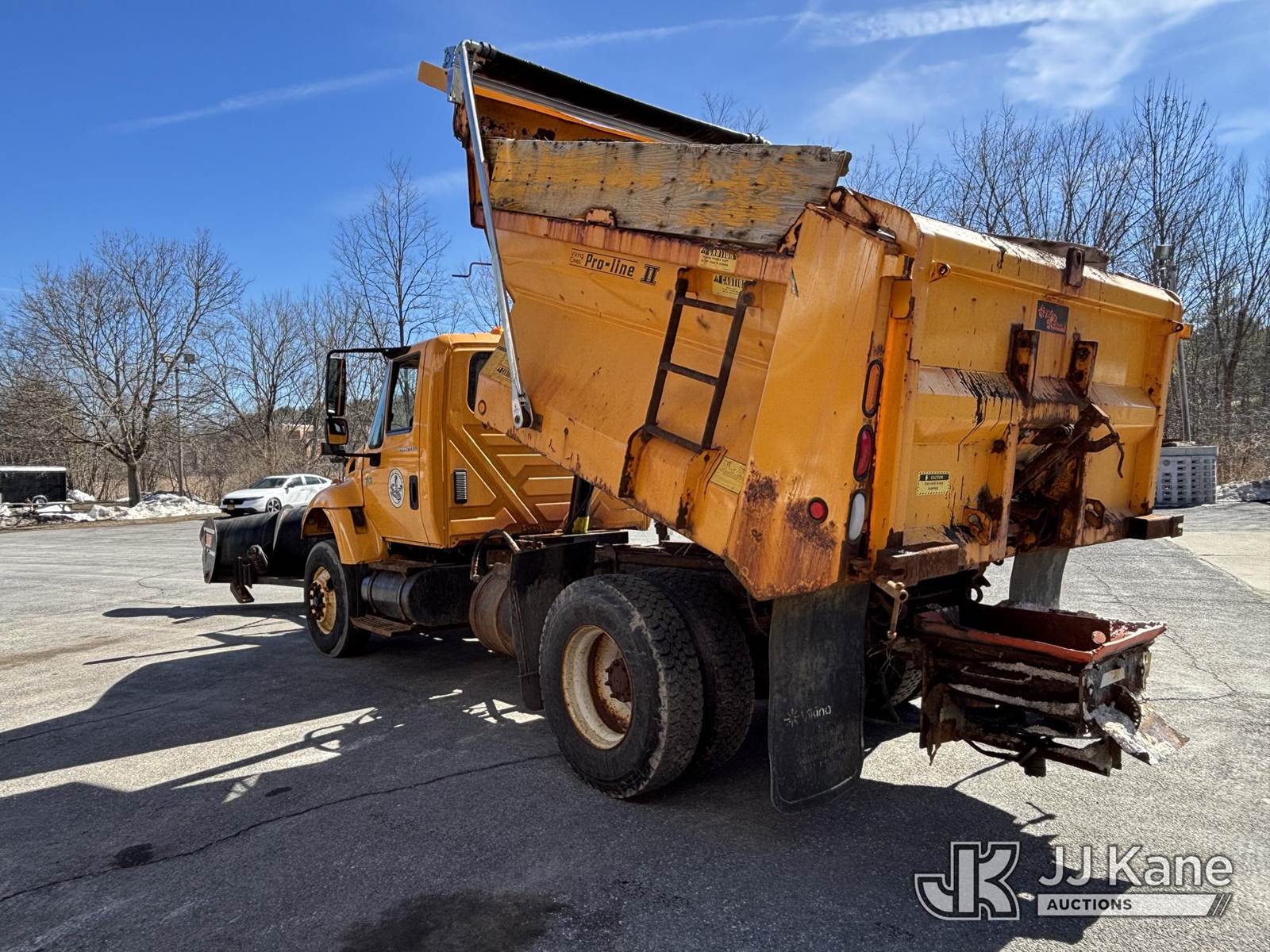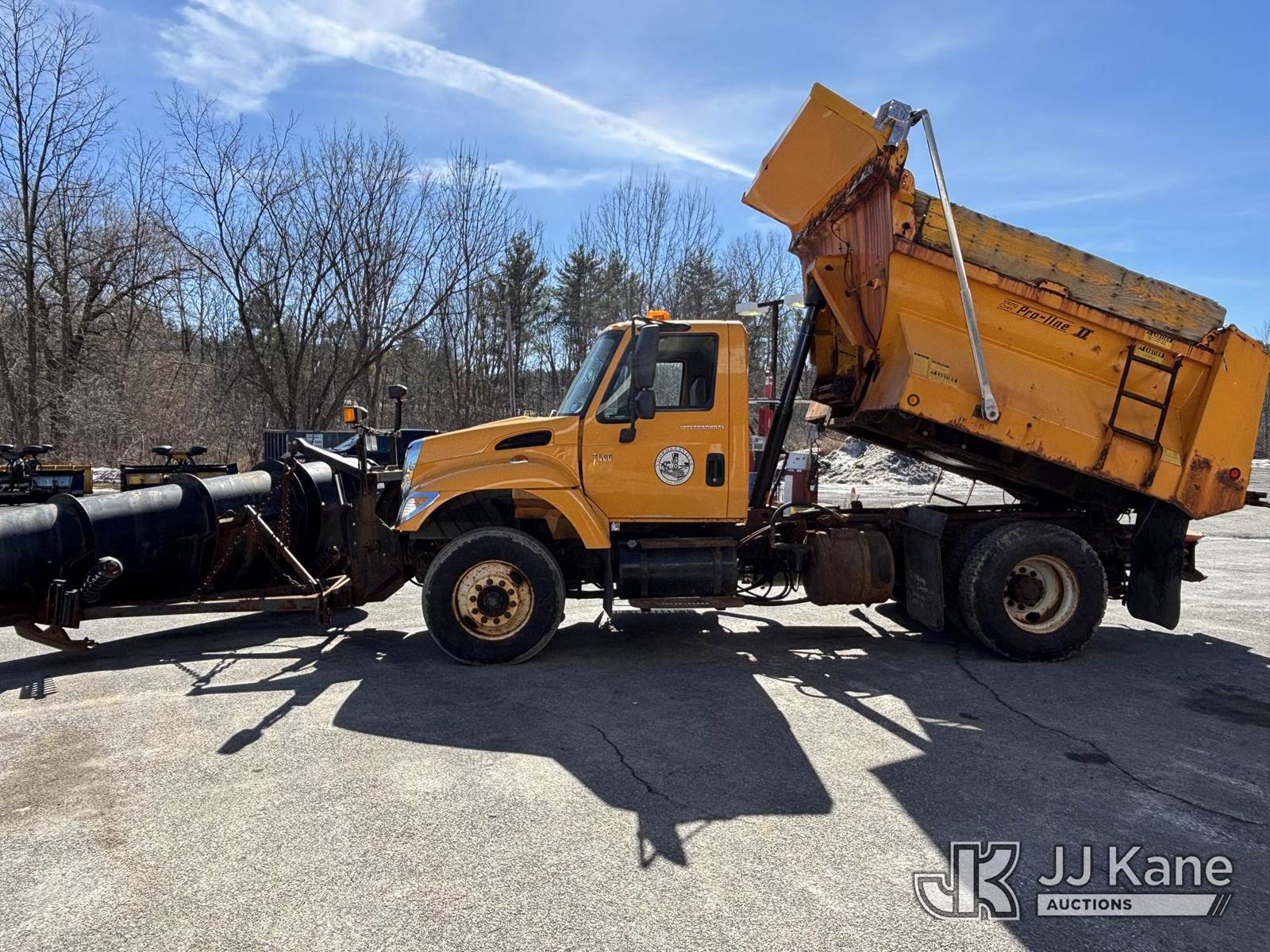2005 International 7400 Dump Truck, 9.3L L6 Diesel, 4X2, Auto, A/C, with Tenco Snowplow & Viking Cives Proline II All Season Spreader/Dump Body, (Exempt from Odometer Disclosure - Reads 25,823 miles) (Runs, Moves & Operates, Salt Spreader Operates, Rust On Exposed Metal) This is a Titled Item NOTE: This unit is being sold AS IS/WHERE IS via Timed Auction and is located in Voorheesville, NY. For pre-sale questions, please contact Adel Cekic at adel.cekic@jjkane.com. Inspection by appointment only. Removal of items will begin the day following the sale and continue Monday through Friday, 8:00 am to 4:00 pm. Purchaser acknowledges ALL lots must be removed within (7) business days or a storage fee may be incurred. There will be no payments accepted onsite. Buyer/Hauler must present a copy of the (Paid in Full) Invoice or Release Form upon arrival. Please refer to the Pick Up Terms listed on the Release Form sent out after purchase. (Buyer is responsible for removal. Assistance by consignor or JJ Kane Auctions is not assured.)