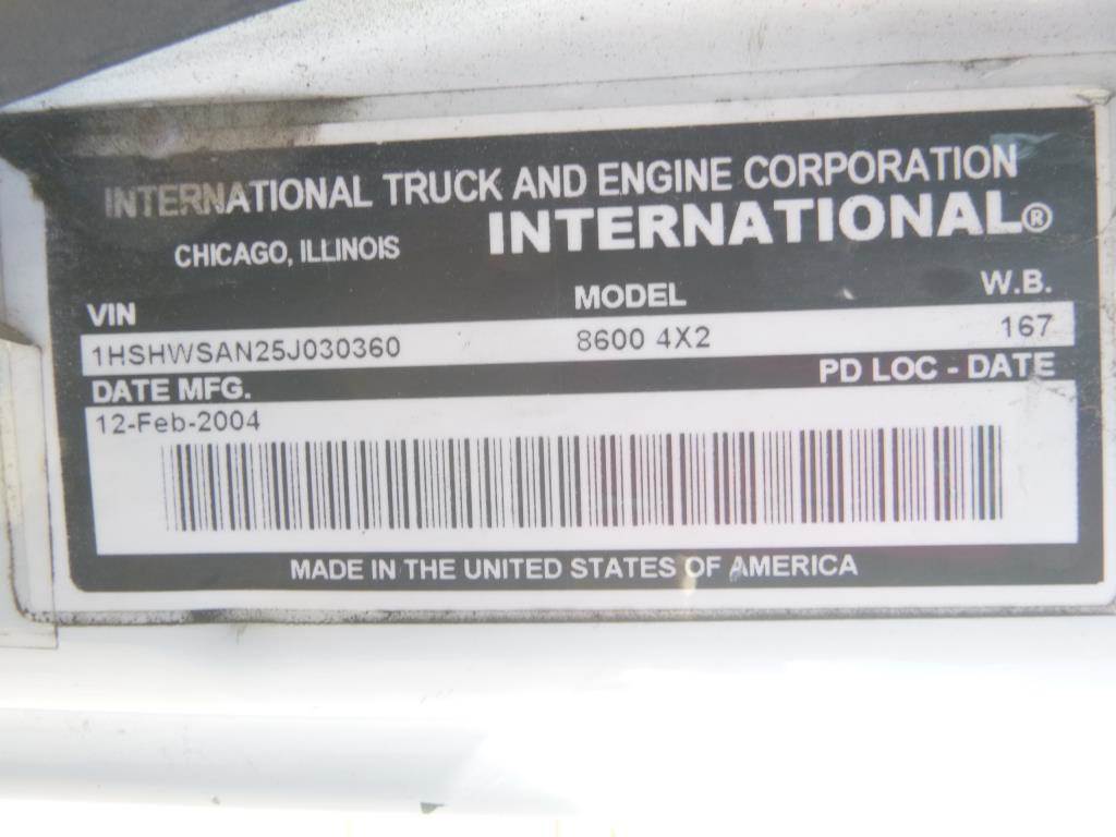 S/N-1HSHWSAN25J030360 Caterpillar 6Cyl Diesel, 10 Speed, 32,000lbs GVWR, 12,000lbs Front Axle, 20,000lbs Rear Axle, AC, Heat, CD, Cruise Control, Trailer Brake Controller, Air Brakes, Fifth Wheel Plate, Air Suspension, Trailer Air Supply, Pintle Hitch, 168" Wheel Base, 22.5" Tire Size Odometer Reading: 268,323 Can NOT be registered in California due to Air Resource Board regulation.