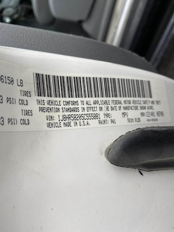 Location: Spokane WA ***Asset Recovery Consignment*** VIN: 1J8HR58205C555881 Engine: Hemi 5.7 L V8 Gas Transmission: Automatic Tow package w/ball hitch, sunroof, running boards, power windows, power mirrors, power locks, cruise control, A/C, AM/FM/CD, rearview camera, 245/65R17 tires. Miles: 284,617