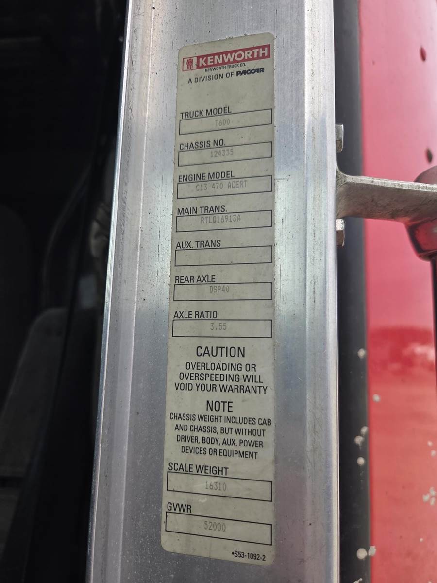 Cat C13 Acert Twin Turbo Diesel Engine, Eaton Fuller 18 Speed Manual Transmission, Interaxle Lock, 52000LB GVWR, Air Ride Suspension, Single Frame, Approx. 44" Sliding Fifth Wheel, Sleeper Cab, Heat/AC w/ Rear Climate Controls, Radio, Cruise Control, Heated/Powered Mirrors, Powered Right Window, Aluminum Rear Rims, 275/80R22.5 Front Tires, 295/75R22.5 Rear Tires,