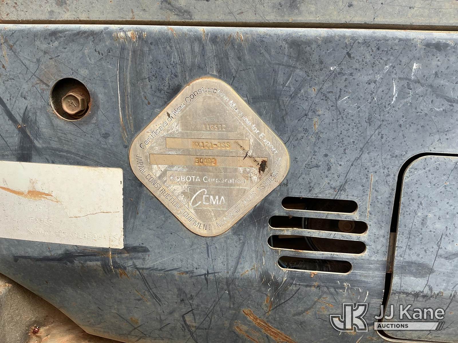2005 Kubota KX121-3SS Mini Hydraulic Excavator, s/n 30492, diesel, Hydraulic Driven, with 12 inch bucket, 4 way backfill blade, ROPS, Coop Unit (Runs, Moves & Operates) (Hours Unknown) NOTE: This unit is being sold AS IS/WHERE IS via Timed Auction and is located in Jefferson, GA. For more information & removal arrangements please contact JT Thomas @ 762-291-7932. Removal by appointment only made at least 24 hours in advance, Buyer/Hauler must present copy of paid invoice upon arrival. Purchaser acknowledges ALL lots must be removed within 7 business days of Auction, or a storage fee may be incurred. For Removal and Pick Up information, please reference the release form sent out after purchase. Pickup time M-F from 8 a.m. to 3 p.m. (Buyer is responsible for removal. Assistance by consignor or JJ Kane Auctions is not assured.)