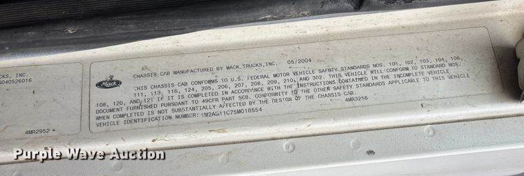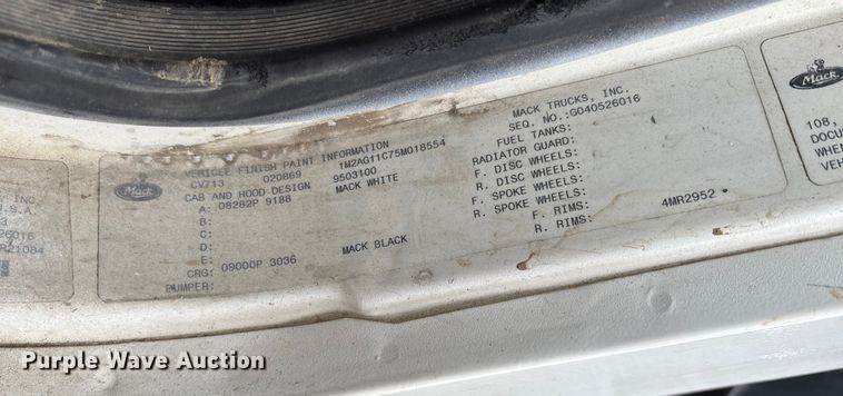 2005 Mack CV dump truck, Miles: 251,397 on odometer, Hours: 20,206 on meter, VIN: 1M2AG11C85M017154, Engine, Mack AMI-335, Displacement:...
