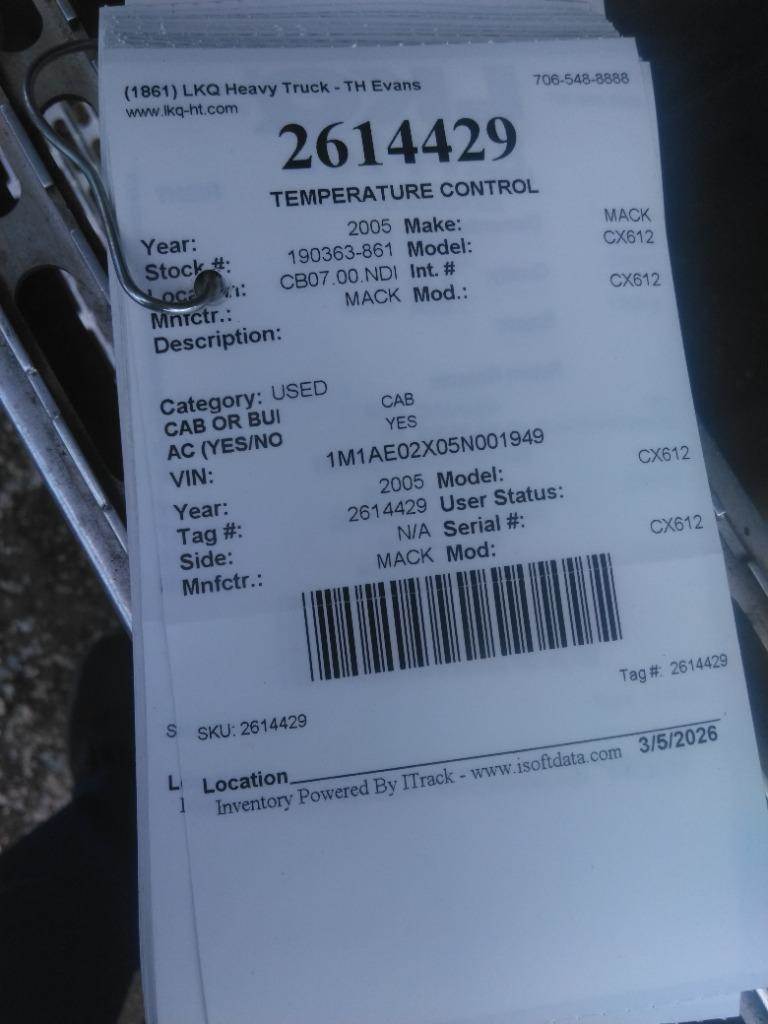 2005 Mack Vision CX612 Heater / AC Temp Control for a Mack CX612
