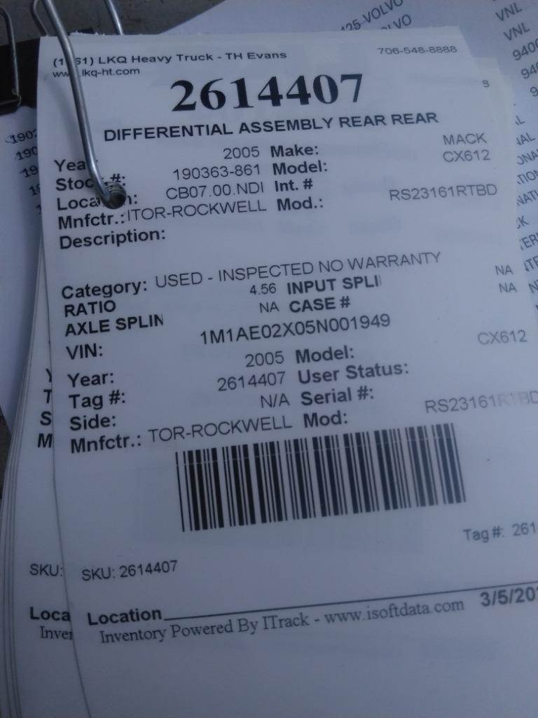 2005 Meritor-Rockwell RS23161RTBD Rear Differential