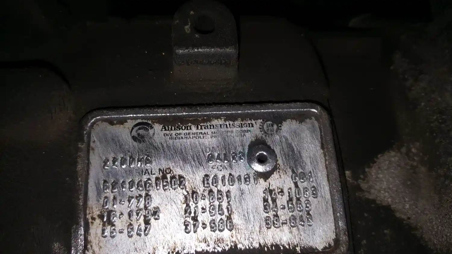 VERIFICATION PENDING, Serial#: PAS PLAQUE, Engine Make: INTER, Engine Model: MAXXFORCE DT, Part Make: ALLISON