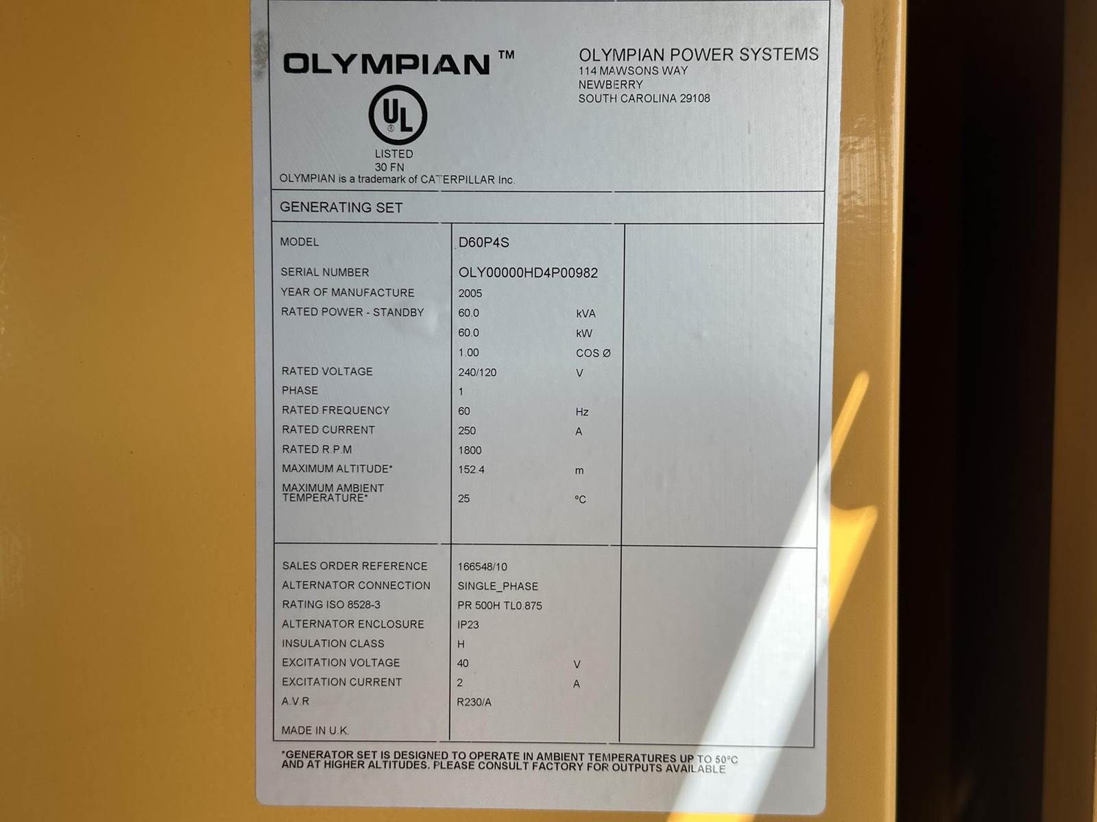 2005 Olympian D60P4S Diesel Generator