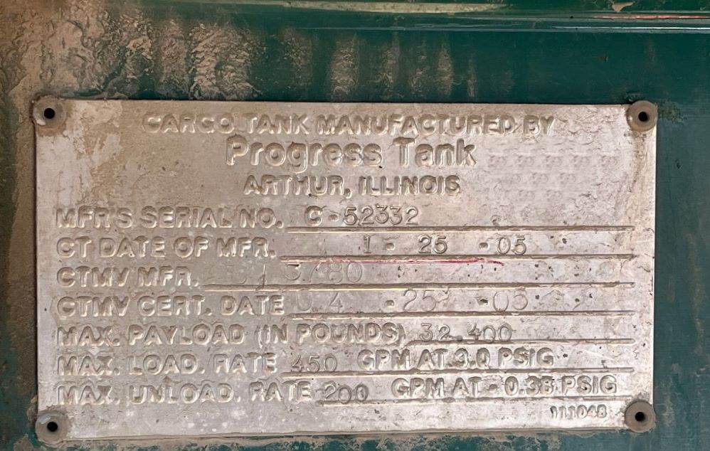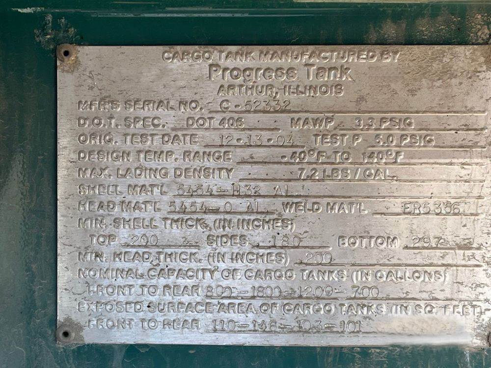2005 Peterbilt 335, Cat diesel engine, Eaton Fuller 9 speed transmission, tandem axle, air ride suspension, 315/80R22.5 front tires, aluminum rims, 11R22.5 rear tires, aluminum rims, shows 569,646 miles. 2005 Progress 4,500-gallon 4 compartment Aluminum tank (tank is painted) (800-1800-1200-700), Bottom load, Dual pumping, Air manifold, electric hose reels, Tank DOT-406 2005 Peterbilt 335, Cat diesel engine, Eaton Fuller 9 speed transmission, tandem axle, air ride suspension, 315/80R22.5 front tires, aluminum rims, 11R22.5 rear tires, aluminum rims, shows 569,646 miles. Will sell the tank separately. CALL US AT OR EMAIL US FOR MORE INFORMATION
