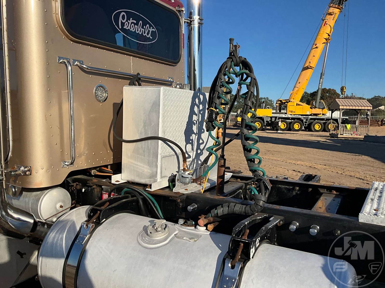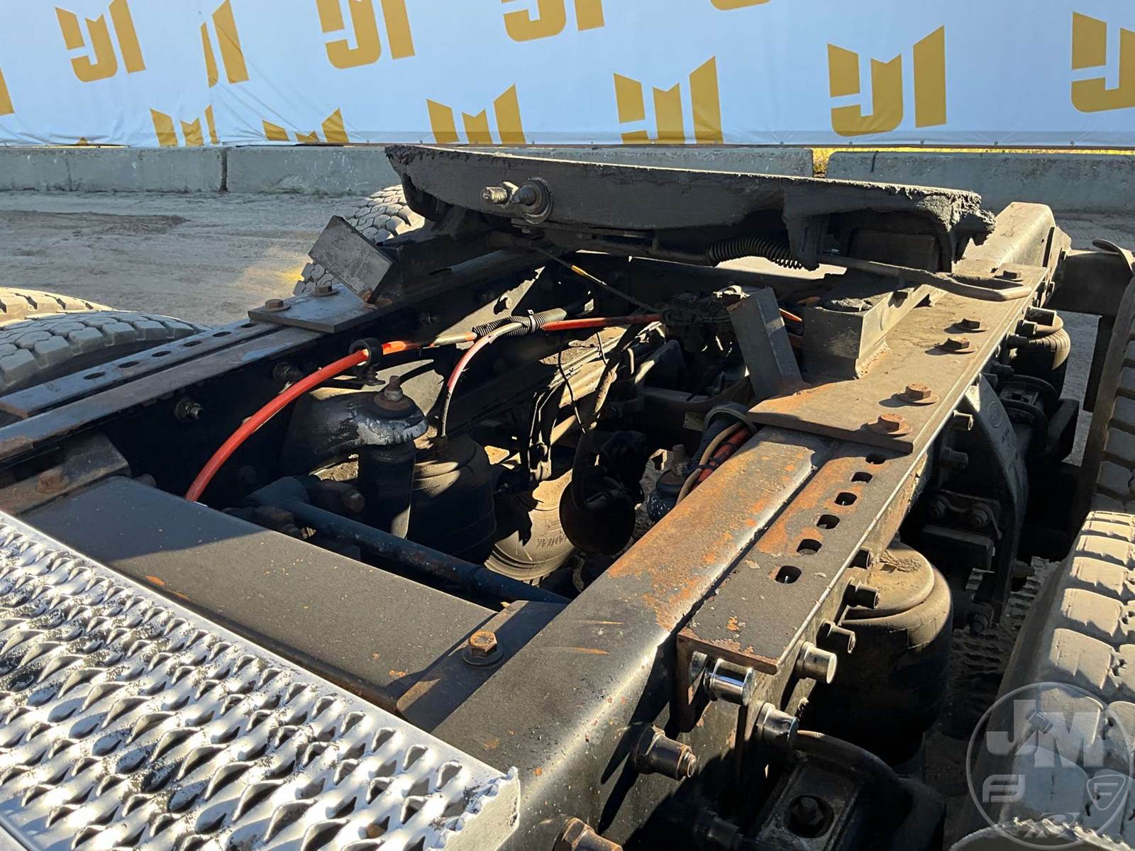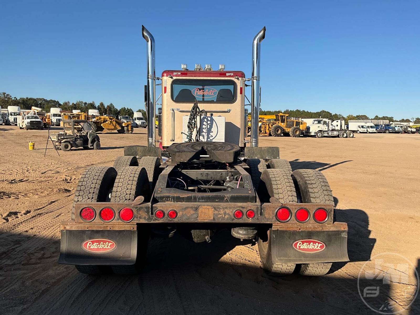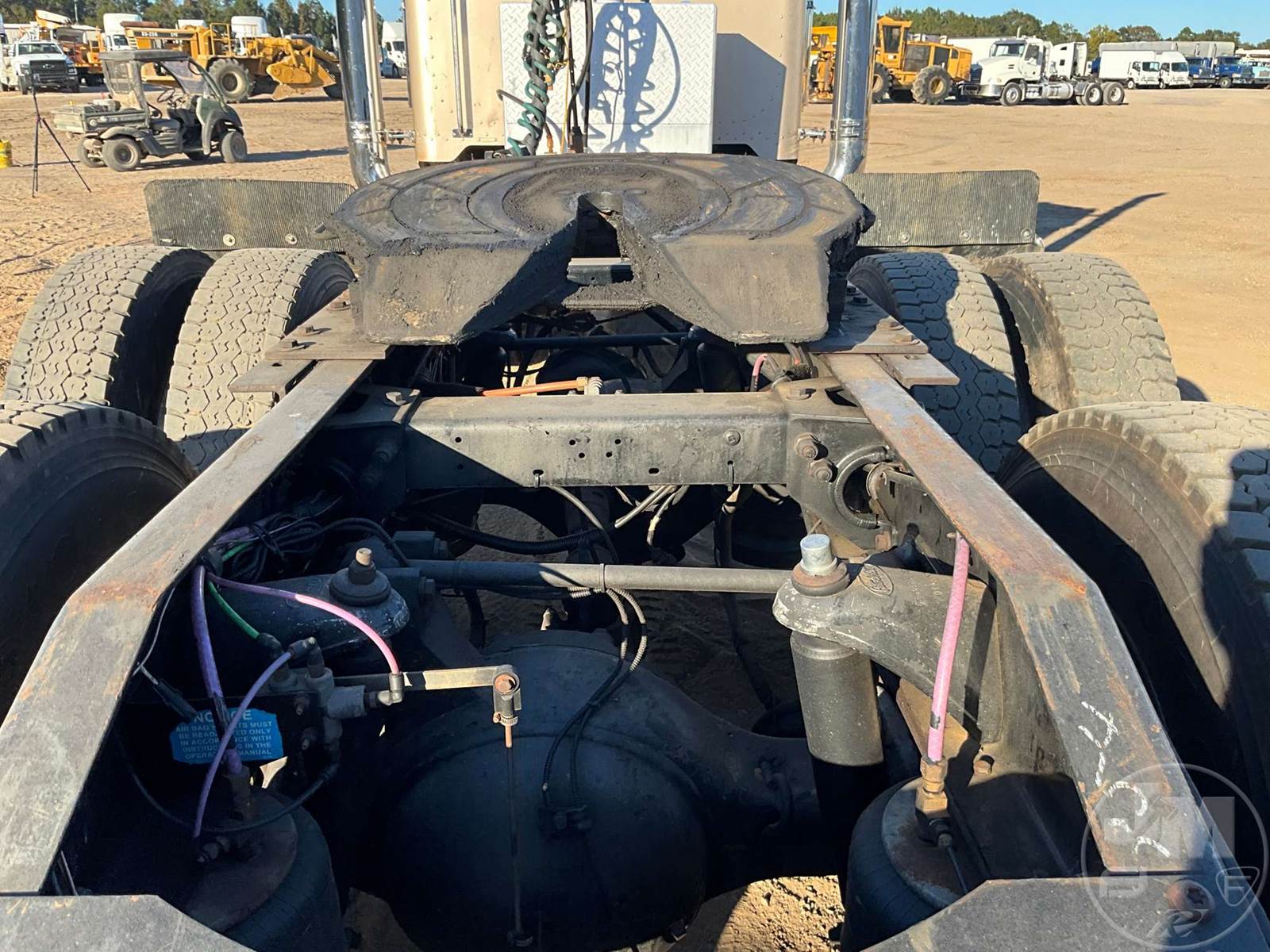 TANDEM AXLE DAY CAB TRUCK TRACTOR, CATERPILLAR, C15, 475 HP, AIR RIDE SUSPENSION, DRUM, 230 " WB, C/A: 133, 12K FRONTS, 36K REARS, 48000 GVWR, STATIONARY FIFTH WHEEL, A/C, AIR DRIVERS SEAT, DUAL AIR SEATS, CRUISE CONTROL, POWER DOOR LOCKS, POWER MIRRORS, ENGINE BRAKE, DIFF LOCK, PTO, DUAL FUEL TANKS, WET KIT, ALUM DISC WHEELS, 11R24.5 TIRES, ODOMETER READS: 358562