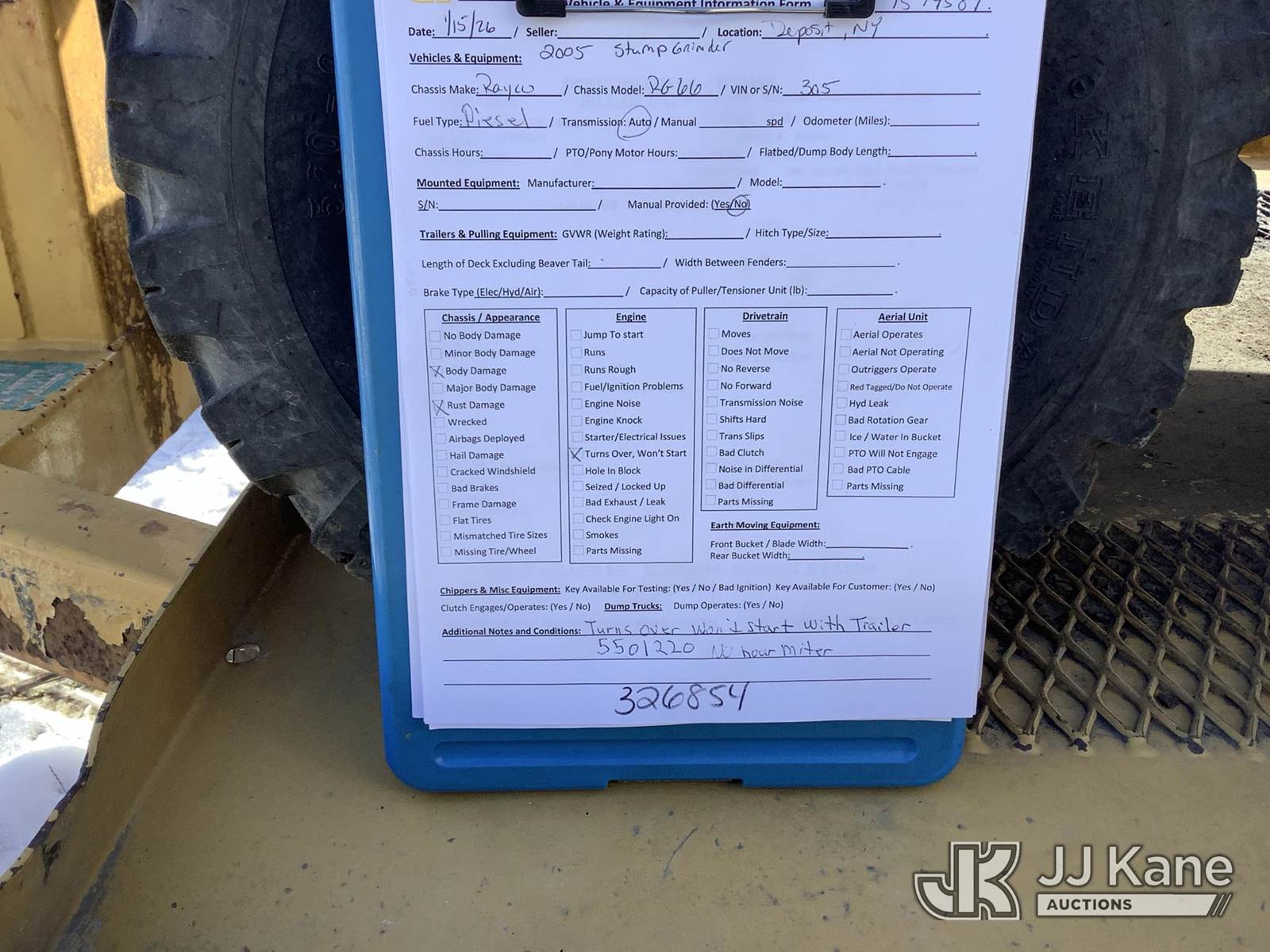 2005 Rayco RG66 Walk-Beside Stump Grinder, s/n 305, Deutz Hydraulic Drive, diesel, Sold with Support Trailer 1579591 (Not Running, Cranks, Condition Unknown) NOTE: This unit is being sold AS IS/WHERE IS via Timed Auction and is located in Deposit, NY. Inspection & preview days for this unit are by appointment only; please contact us at contact@jjkane.com or 84-Go-JJKane for more details. (Buyer is responsible for removal. Assistance by consignor or JJ Kane Auctions is not assured.)