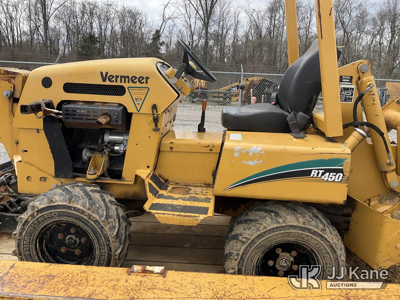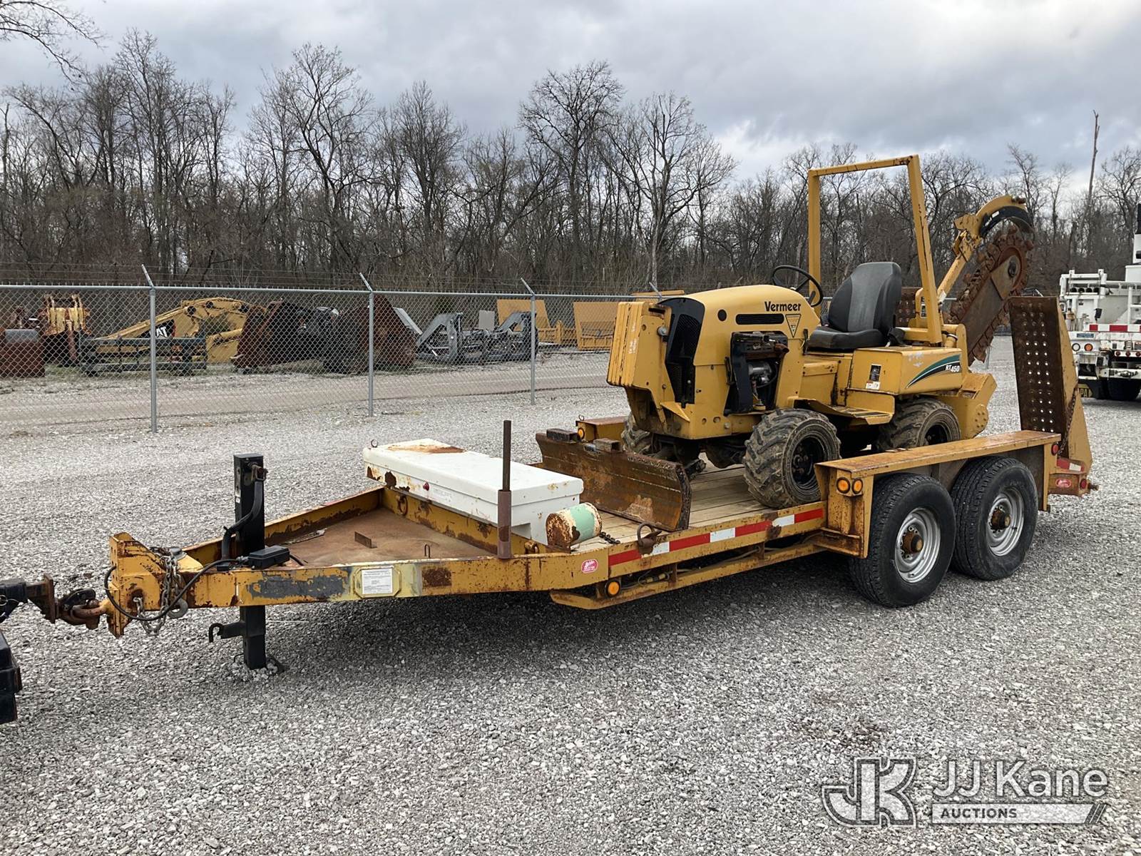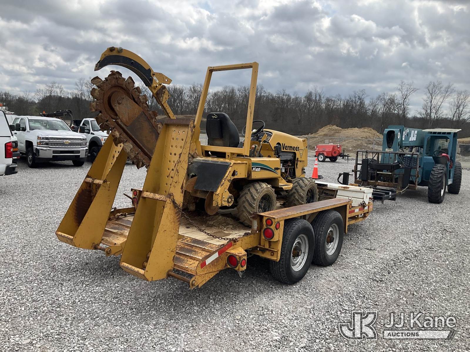 2005 Vermeer RT450 Rubber Tired Trencher, s/n 1VRX0721551000994, Deutz diesel, Hydrostatic, with trencher boom w/ carbide c-cup chain, backfill blade, ROPS post & 2005 Belshe T/A Tagalong Support Trailer VIN: 16JF0142451041539, To Be Sold With Lot# V308T (Equipment and trailer price will be split out on invoice to reflect 80/20, equipment to trailer price ratio for tax purposes) (Not Running, Condition Unknown) (Reads 1,465 hours) NOTE: This unit is being sold AS IS/WHERE IS via Timed Auction and is located in Verona, KY. Inspection & preview days for this unit are the 2 business days prior to the first day of items closing for this auction, item is located at 2841 Verona-Mudlick Rd Ste B Verona, KY 41092 and hours of operations are 8a-4p. For pre-sale questions, please contact Office Staff @ (502) 612-5080. Auctioneer Michael Whitebread / License # 256617. (Buyer is responsible for removal. Assistance by consignor or JJ Kane Auctions is not assured.)