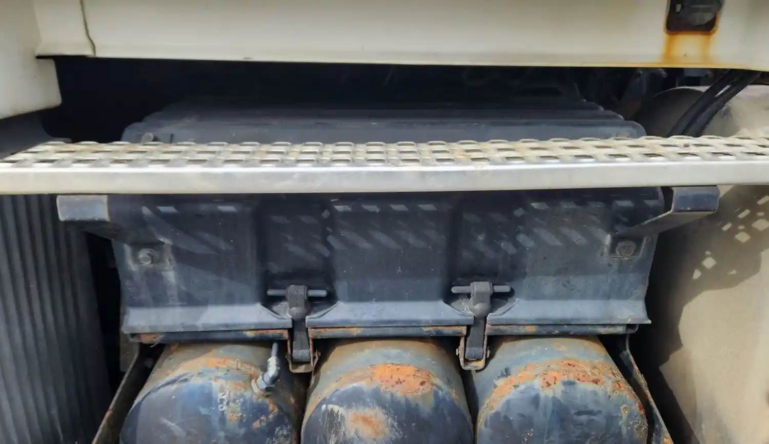 (Used) 2014 Freightliner Cascadia125, BATTERY BOX COVER- Side: Central Cover behind Cab, Capacity: 4 Batteries, Material: Plastic ...