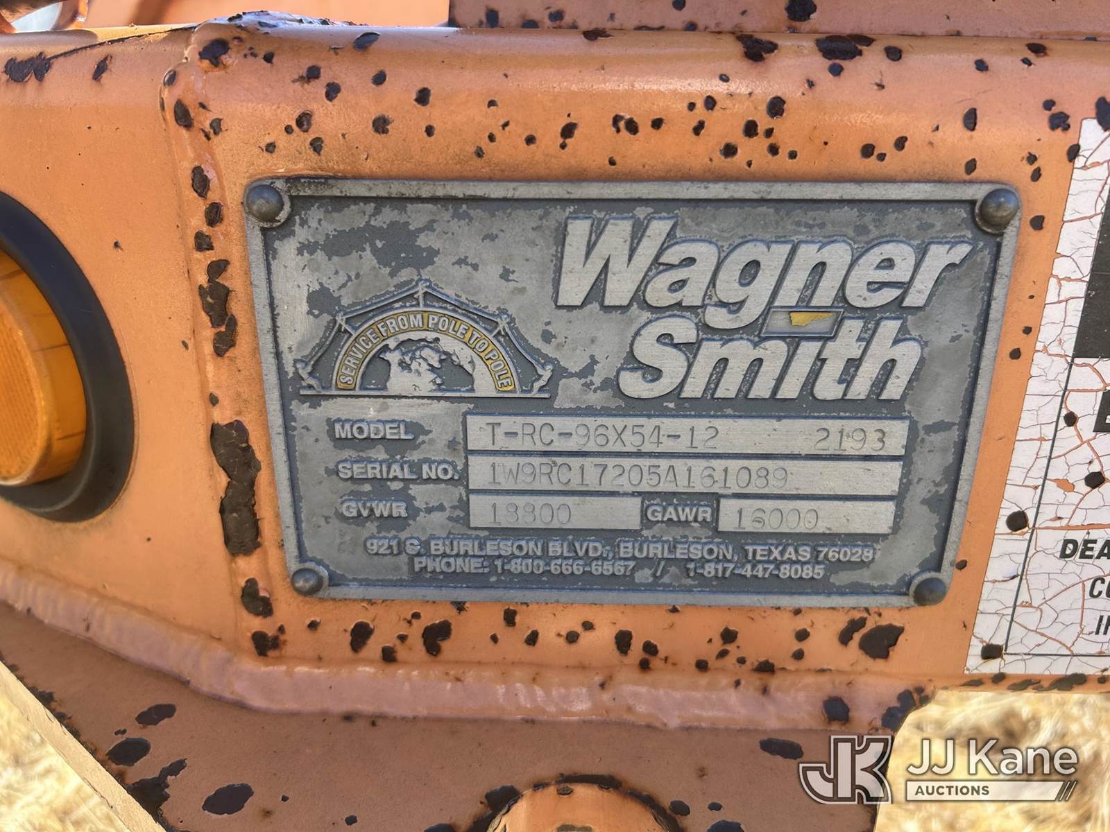 2005 Wagner Smith T-RC-96X54-12 T/A Reel Trailer, This is a Titled Item NOTE: This unit is being sold AS IS/WHERE IS via Timed Auction and is located in Killeen, TX. For more information & removal arrangements please contact David Lange @ 817-602-1241. (Buyer is responsible for removal. Assistance by consignor or JJ Kane Auctions is not assured.)