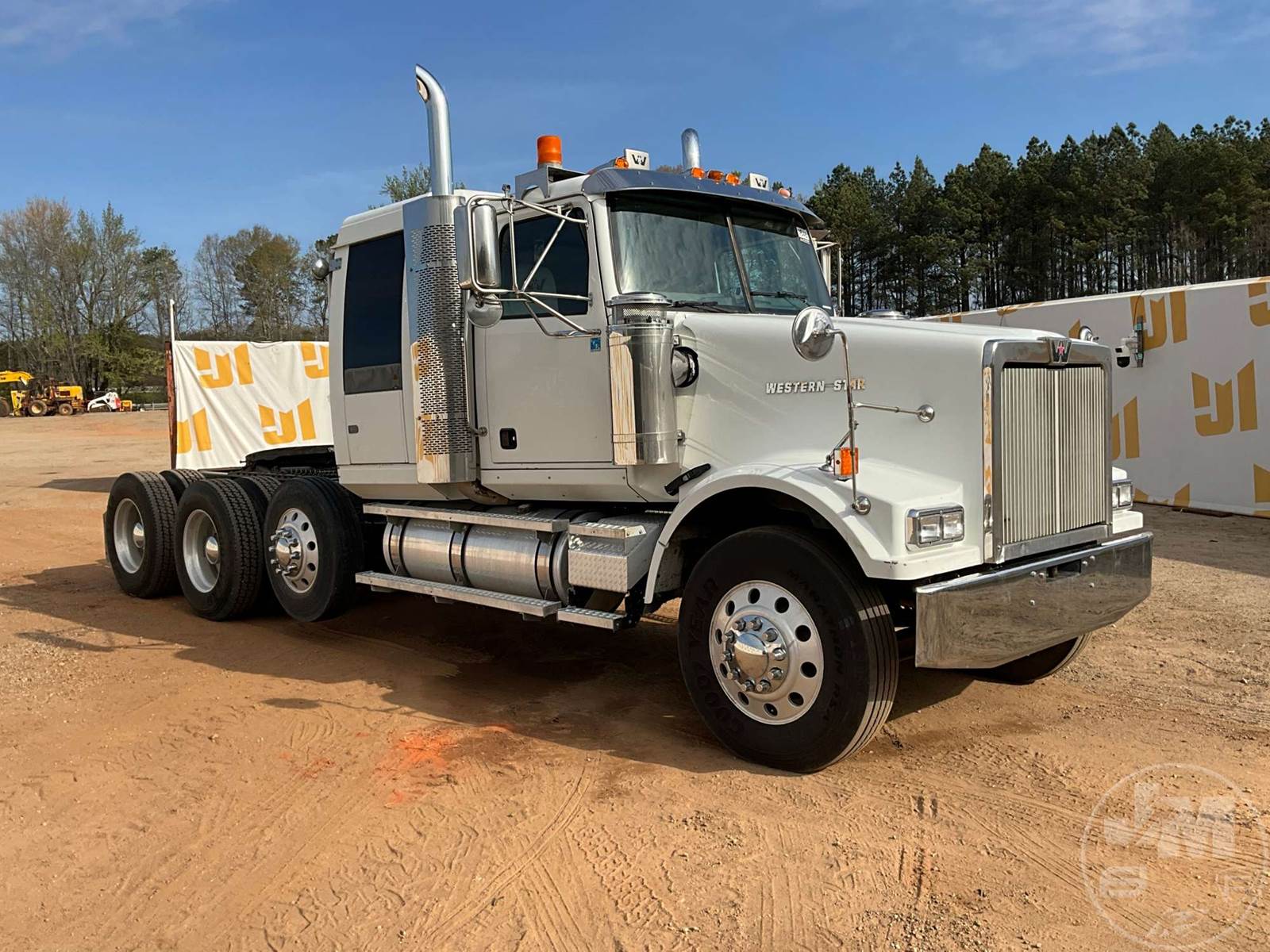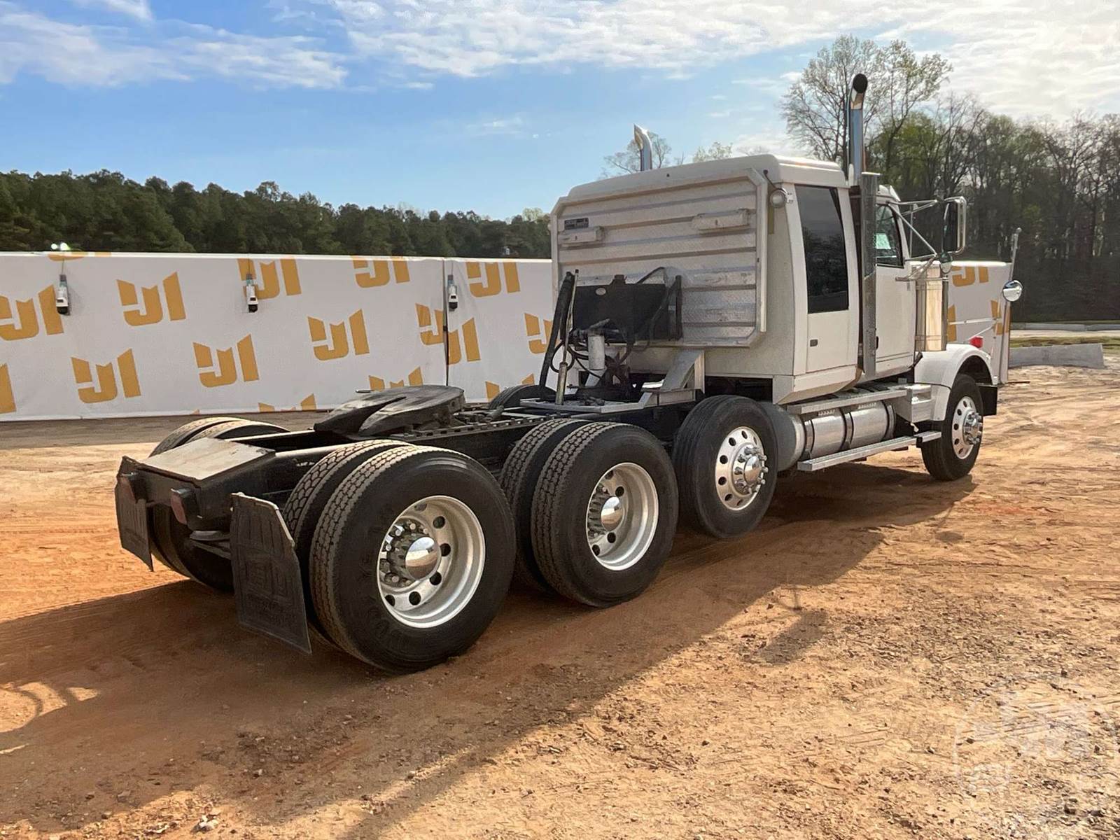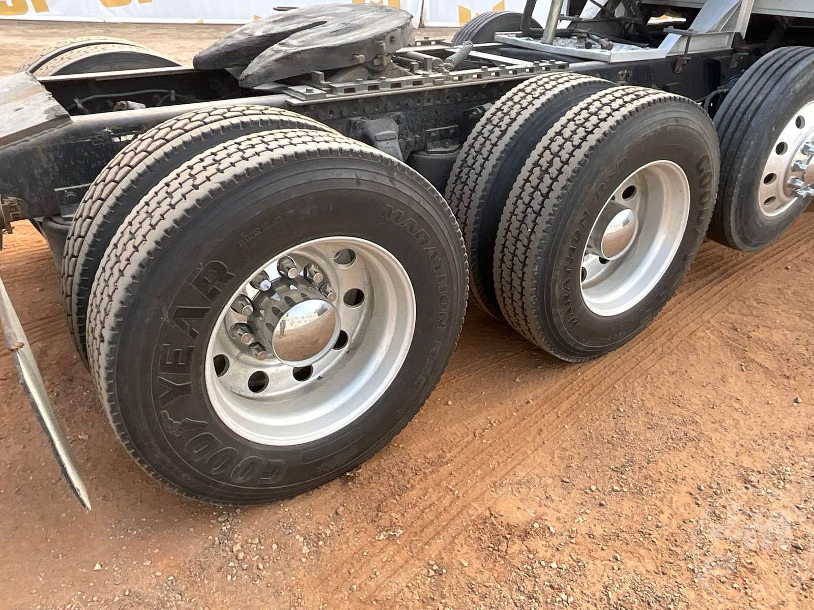 TRI AXLE TRUCK TRACTOR, CATERPILLAR, C15, EATON FULLER, 18 SPEED, AIR RIDE SUSPENSION, DRUM, 213 " WB, C/A: 104", 14K FRONTS, 46K REARS, 72670 GVWR, 3RD AXLE CAPACITY 12350, DOUBLE FRAME, AIR SLIDE FIFTH WHEEL, A/C, AIR DRIVERS SEAT, DUAL AIR SEATS, POWER WINDOWS, POWER DOOR LOCKS, POWER MIRRORS, ENGINE BRAKE, DIFF LOCK, DUAL FUEL TANKS, WET KIT, HEADACHE RACK, SLEEPER SIZE 39", ALUM DISC WHEELS, 11R24.5 TIRES, ODOMETER READS: 631761