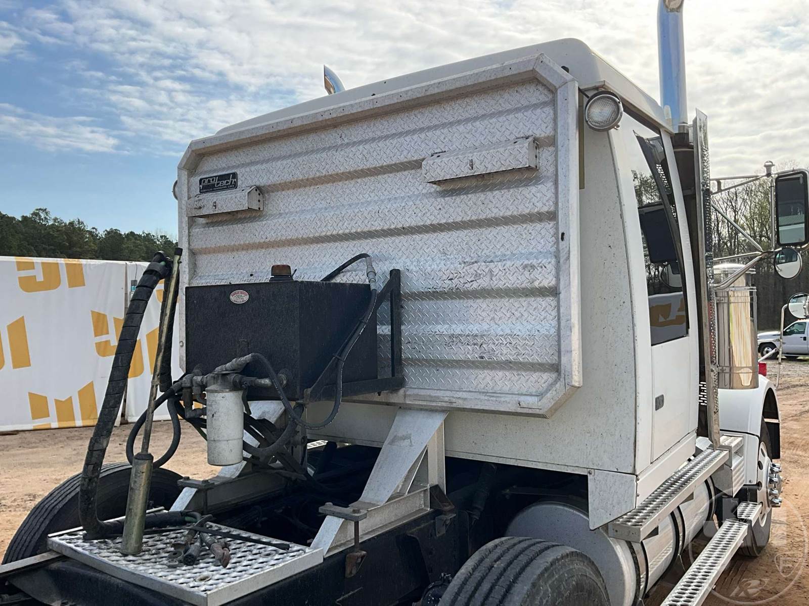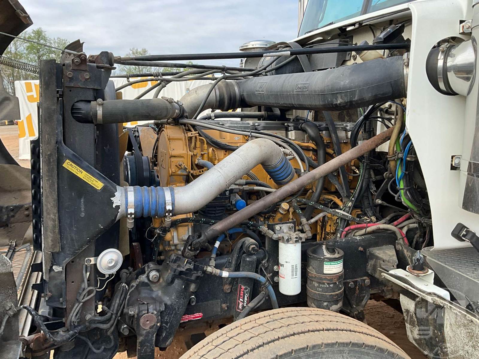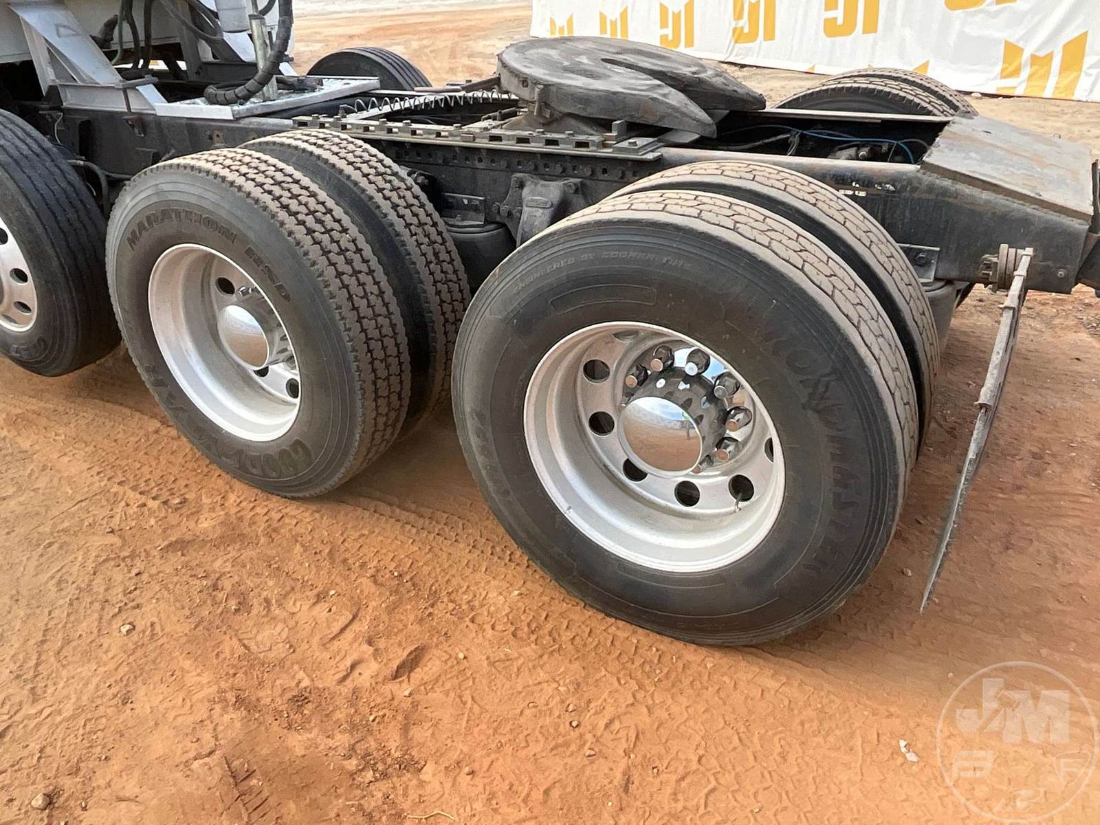 TRI AXLE TRUCK TRACTOR, CATERPILLAR, C15, EATON FULLER, 18 SPEED, AIR RIDE SUSPENSION, DRUM, 213 " WB, C/A: 104", 14K FRONTS, 46K REARS, 72670 GVWR, 3RD AXLE CAPACITY 12350, DOUBLE FRAME, AIR SLIDE FIFTH WHEEL, A/C, AIR DRIVERS SEAT, DUAL AIR SEATS, POWER WINDOWS, POWER DOOR LOCKS, POWER MIRRORS, ENGINE BRAKE, DIFF LOCK, DUAL FUEL TANKS, WET KIT, HEADACHE RACK, SLEEPER SIZE 39", ALUM DISC WHEELS, 11R24.5 TIRES, ODOMETER READS: 631761