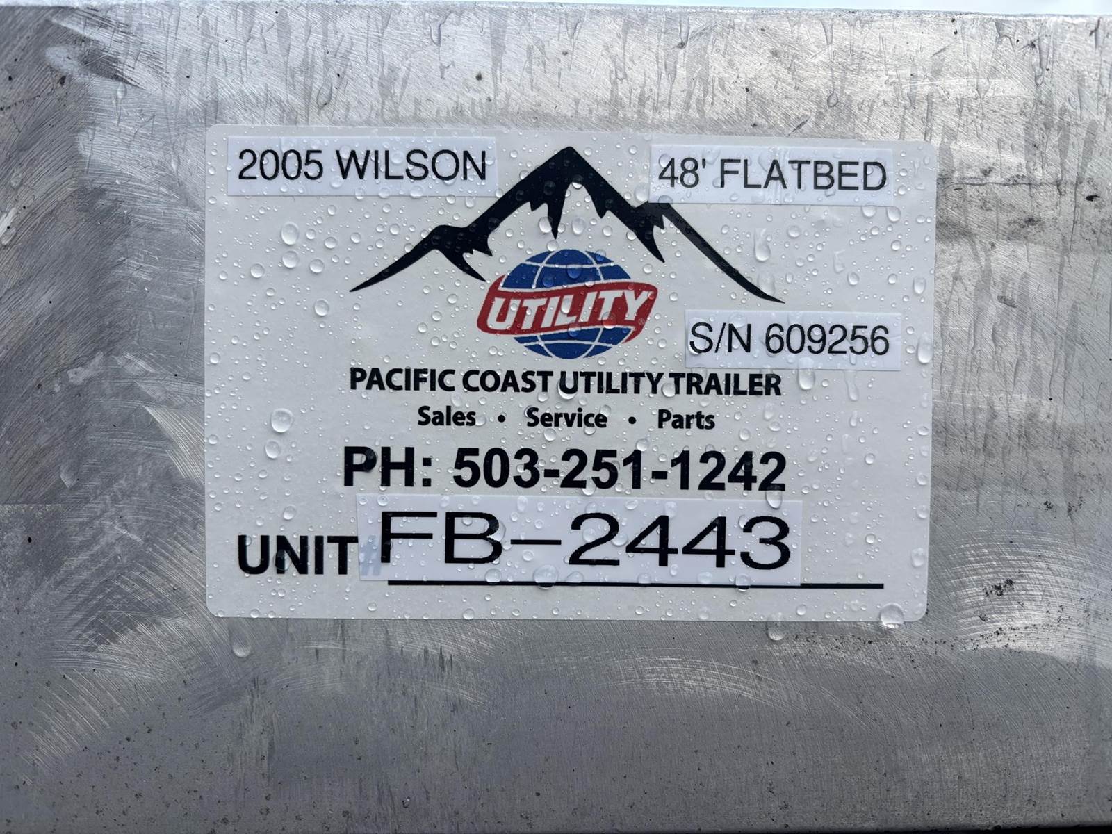 2005 WESTERN 48’ FLATBED FB-2433, 48’ X 102”, 22” KINGPIN LOCATION, TANDEM AIR RIDE, FIXED 10’2” AXLE SPREAD, 295/22.5 TIRES, ALUMINUM...