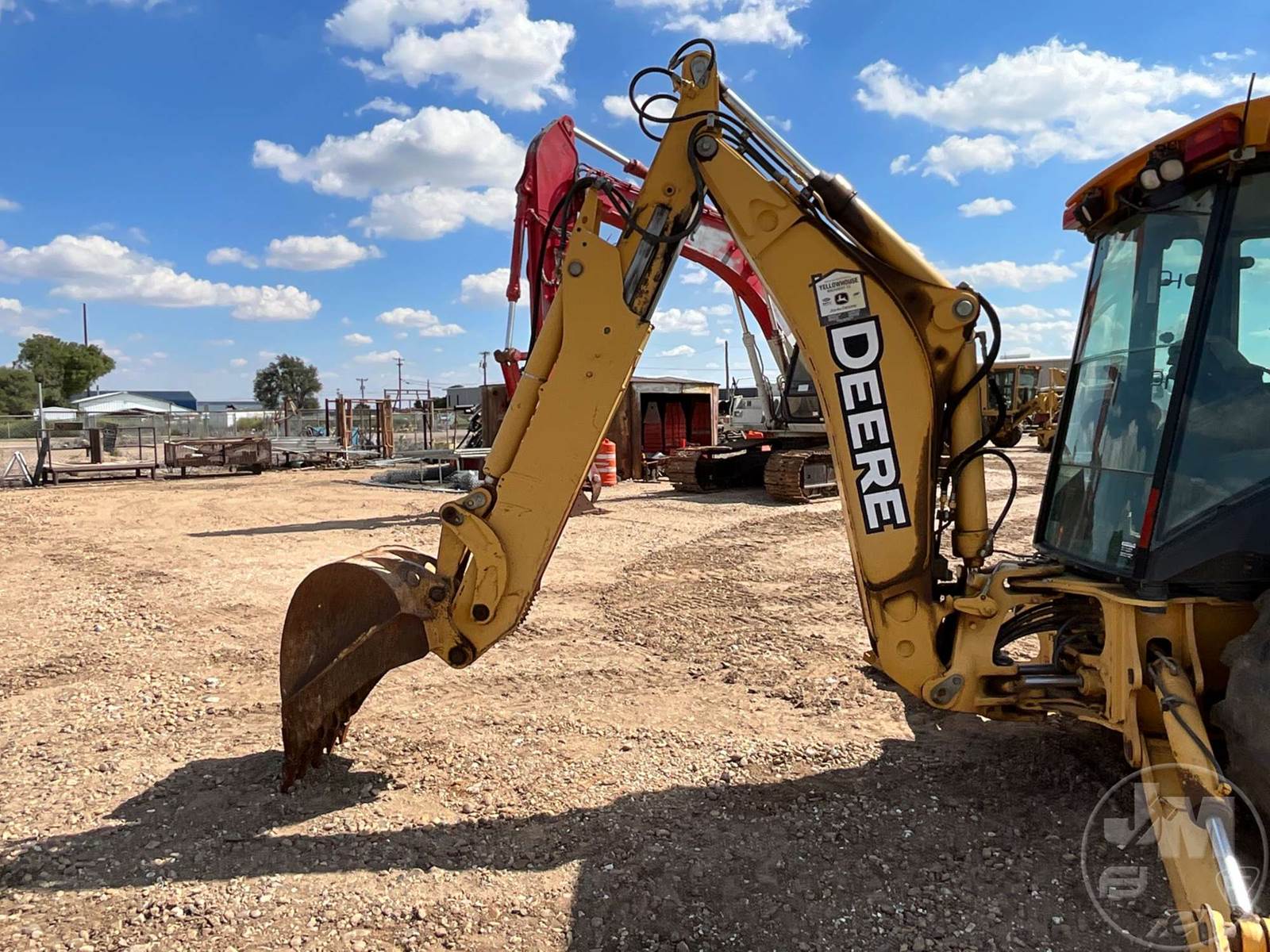 DEERE 4X4 LOADER BACKHOE, CAB, AC, GP BKT, MP BKT, E-STICK, 36" BUCKET, FRONT TIRE SIZE 12.5/80-18, REAR TIRE SIZE 19.5L.24, HOUR METER...