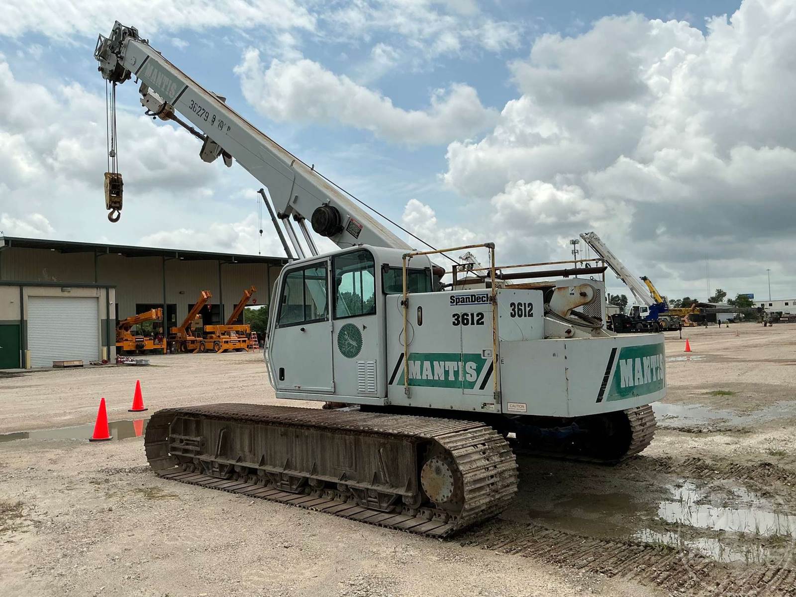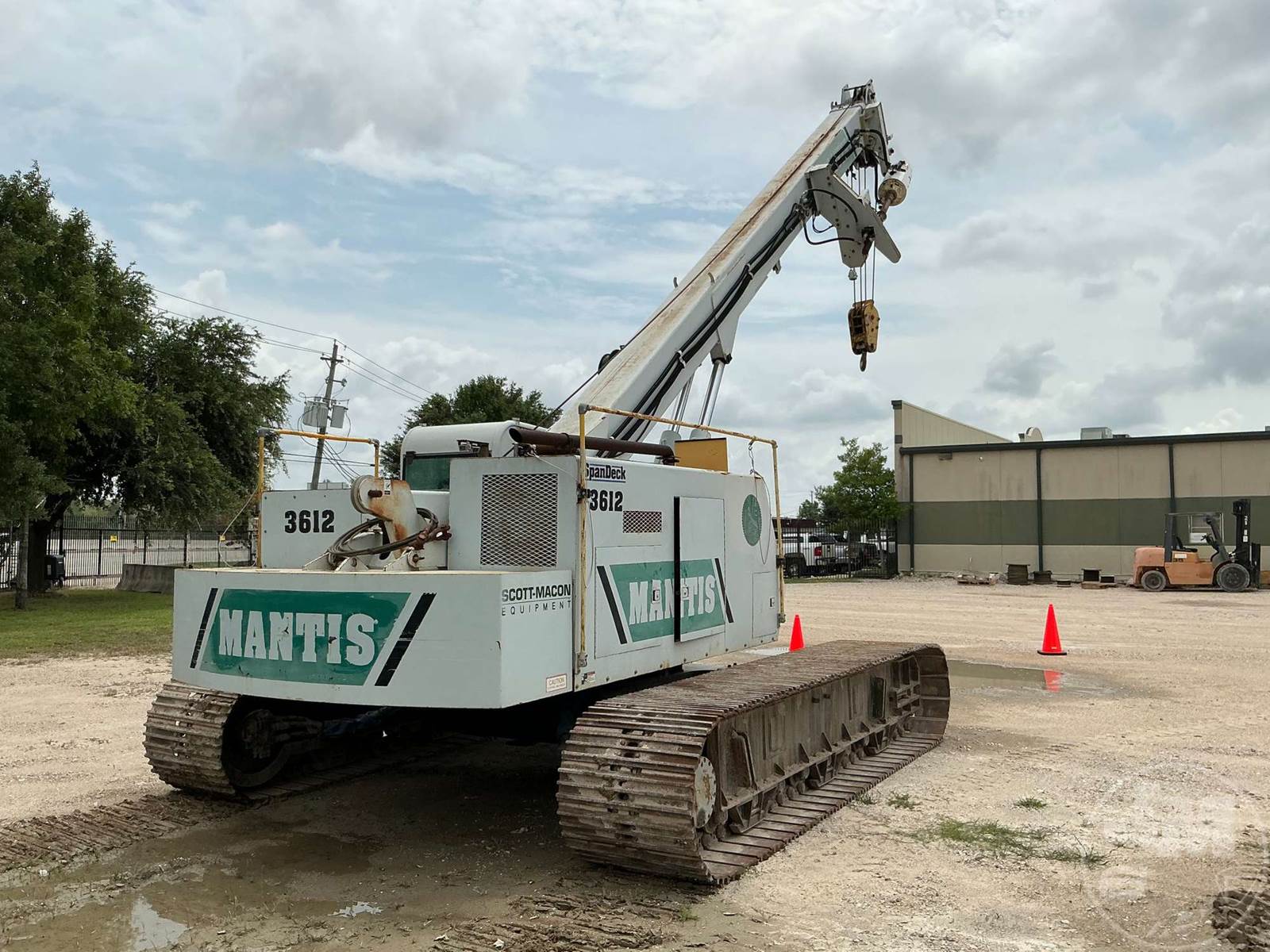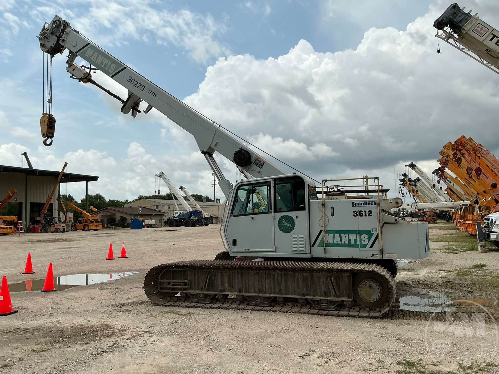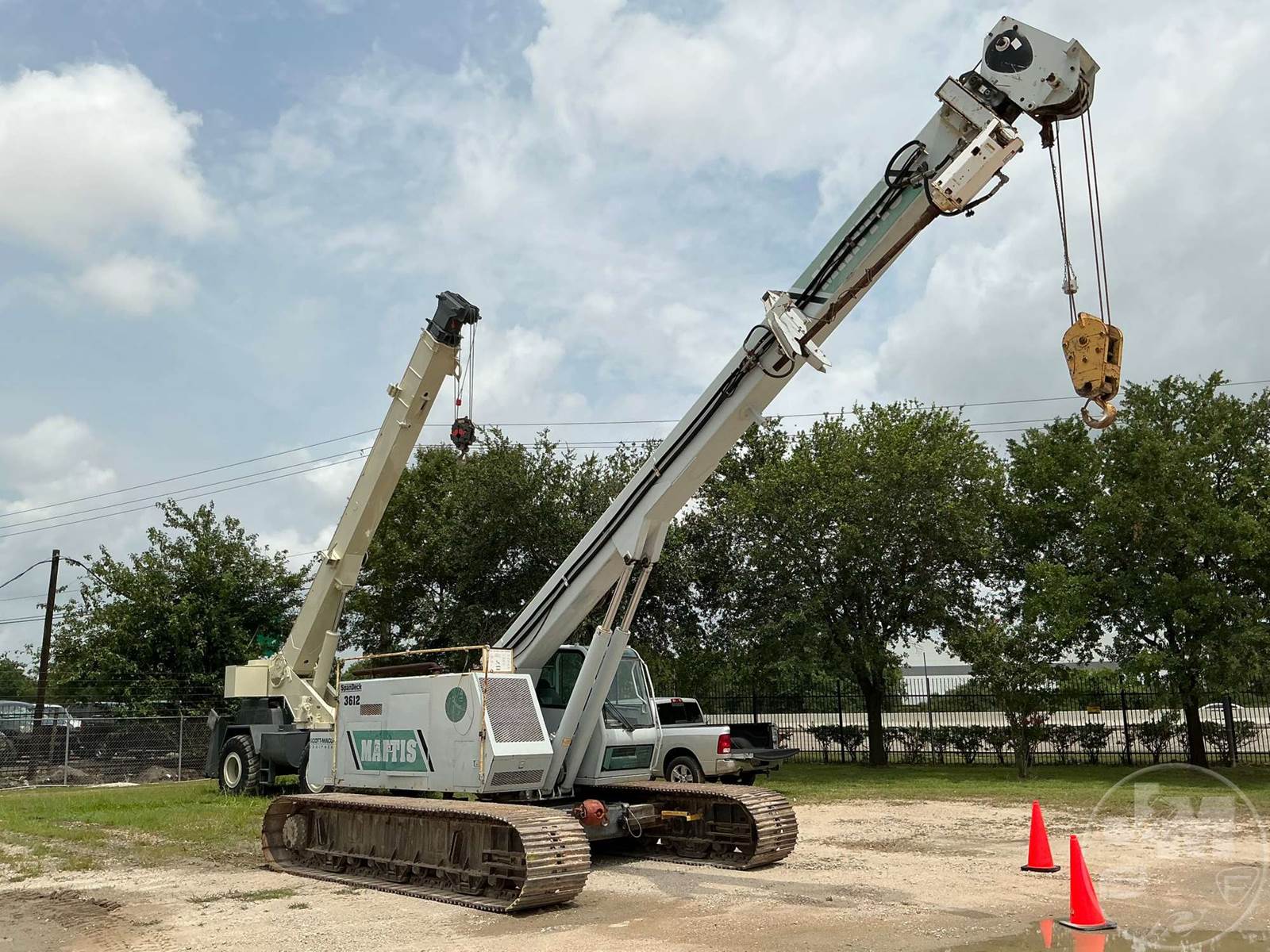 MANTIS CRAWLER CRANE, 2006 MANTIS 3612 18 TON TELESCOPIC BOOM CRAWLER CRANE EQUIPPED WITHÂ 71' OF MAIN BOOM, NO JIB, BLOCK, BALL, ANTI-TWO BLOCK, SINGLE WINCH, NO JIB, AC, HEAT, CUMMINS QSB5.9L TIER 3 173HP ENGINE, ENGINE HOURS 5422, 18 TON 2 SHEAVE BLOCK, AUGER ATTACHMENT, HOUR METER READS: 5422. **DEALER RENTAL FLEET*****LOCATED IN HOUSTON, TX***