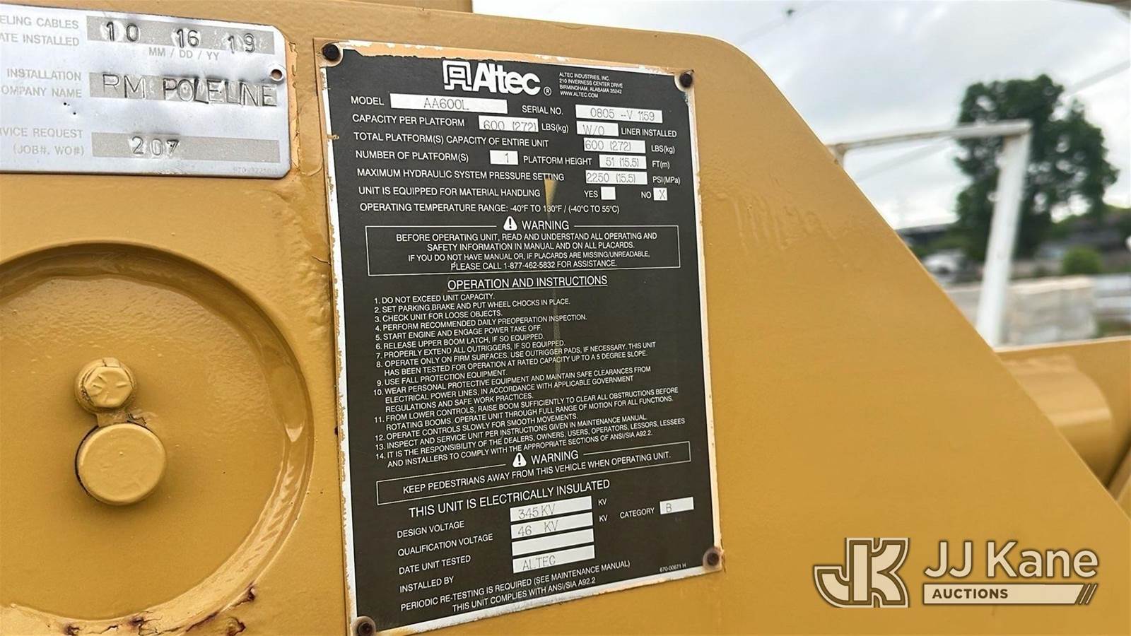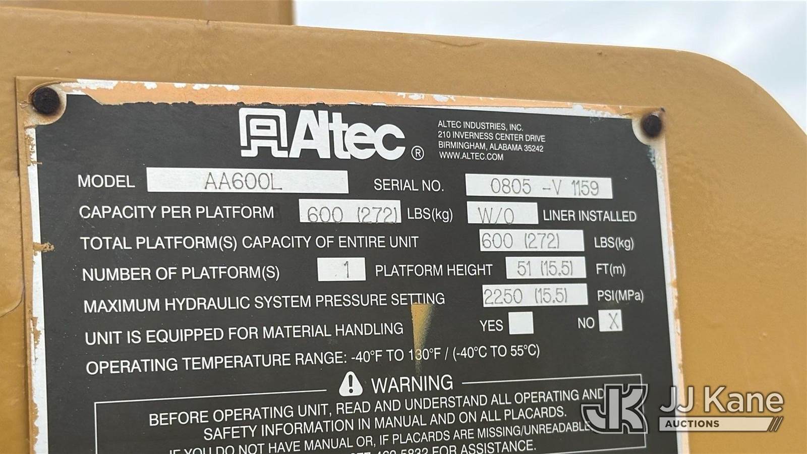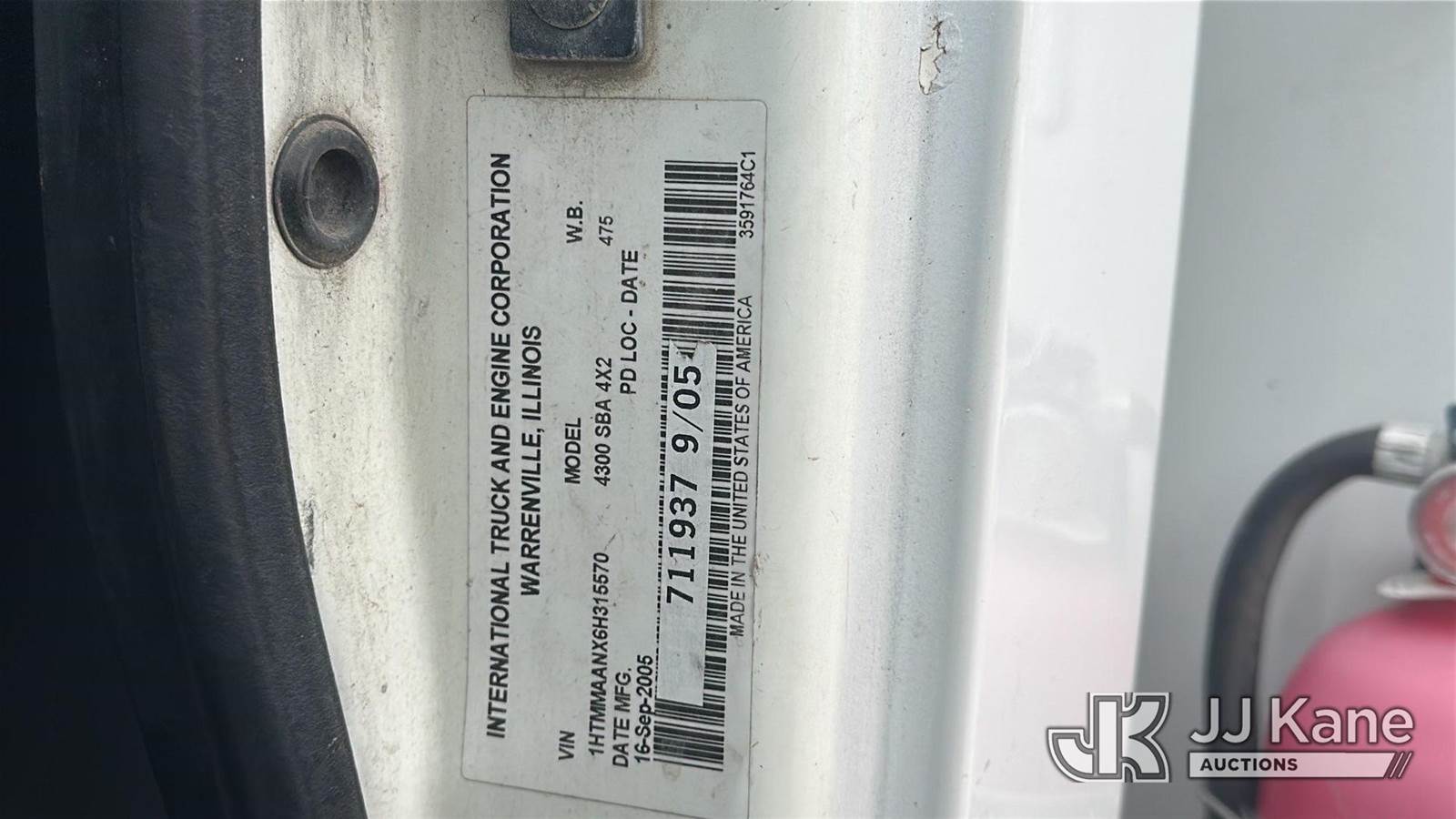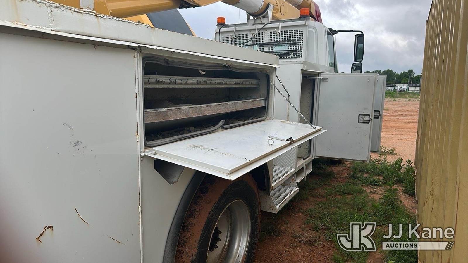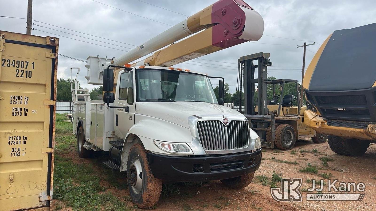 Altec AA600L, 56 ft, Bucket s/n 0805 -V 1159, with two man bucket, rear mounted on 2006 International 4300 Utility Truck, 7.6L 4X2, DIESEL, Manual, A/C, (Exempt from Odometer Disclosure - Reads 351,938 miles (unverified)) ((Runs & Moves) (Engine Performance Concerns, Engine Won't Stay Running Without A Battery Pack, Conditions Unknown)) This is a Titled Item NOTE: This unit is being sold AS IS/WHERE IS via Timed Auction and is located in Oklahoma City, OK. Inspection & preview days for this unit are by appointment only; please contact us at contact@jjkane.com or 84-Go-JJKane for more details. (Missing manuals, See Auction Company for Manufacturers Information to obtain manuals) (Buyer is responsible for removal. Assistance by consignor or JJ Kane Auctions is not assured.)