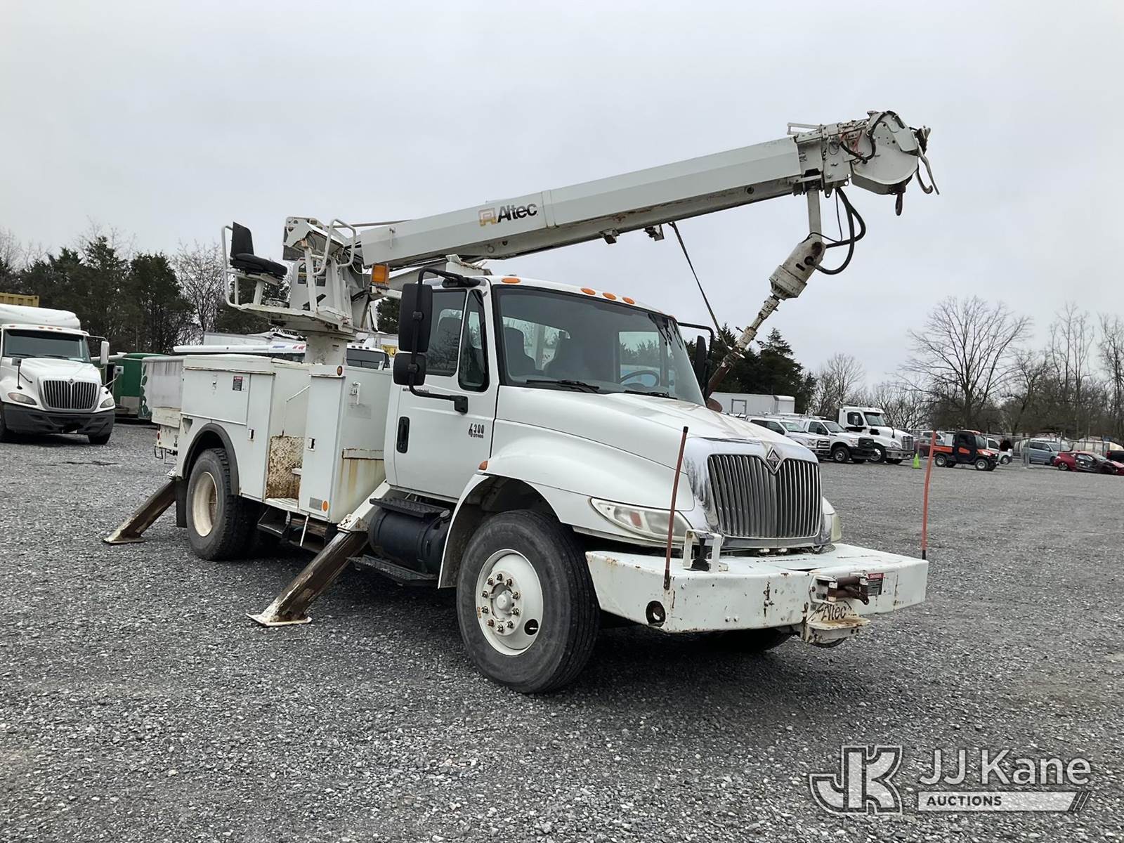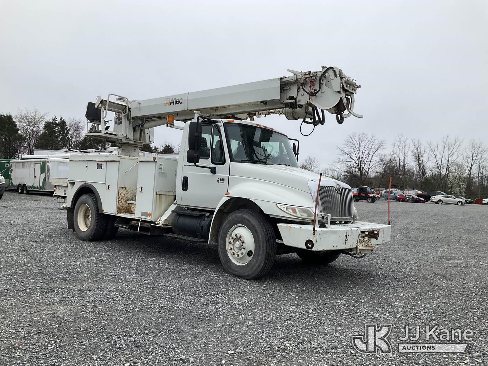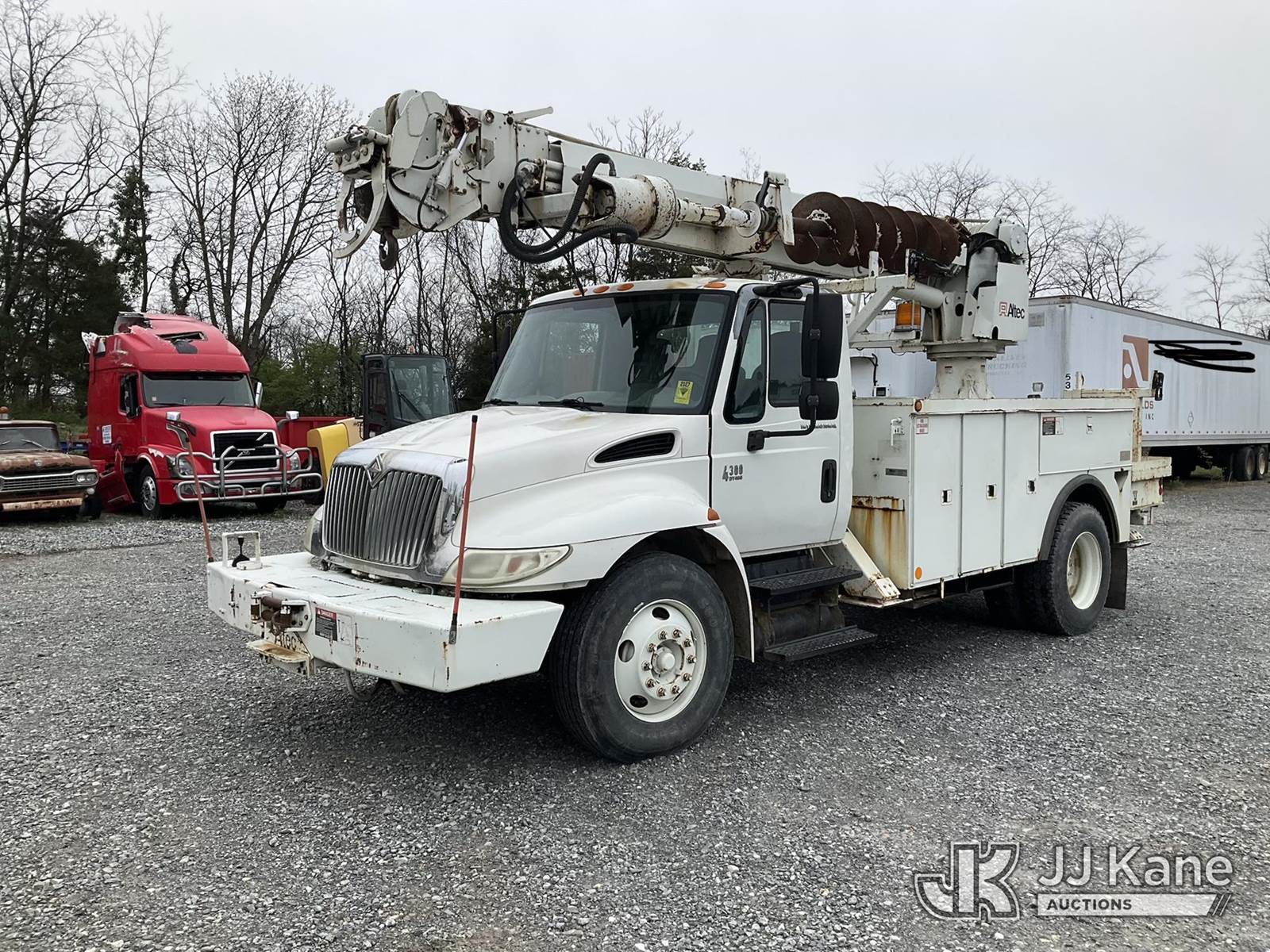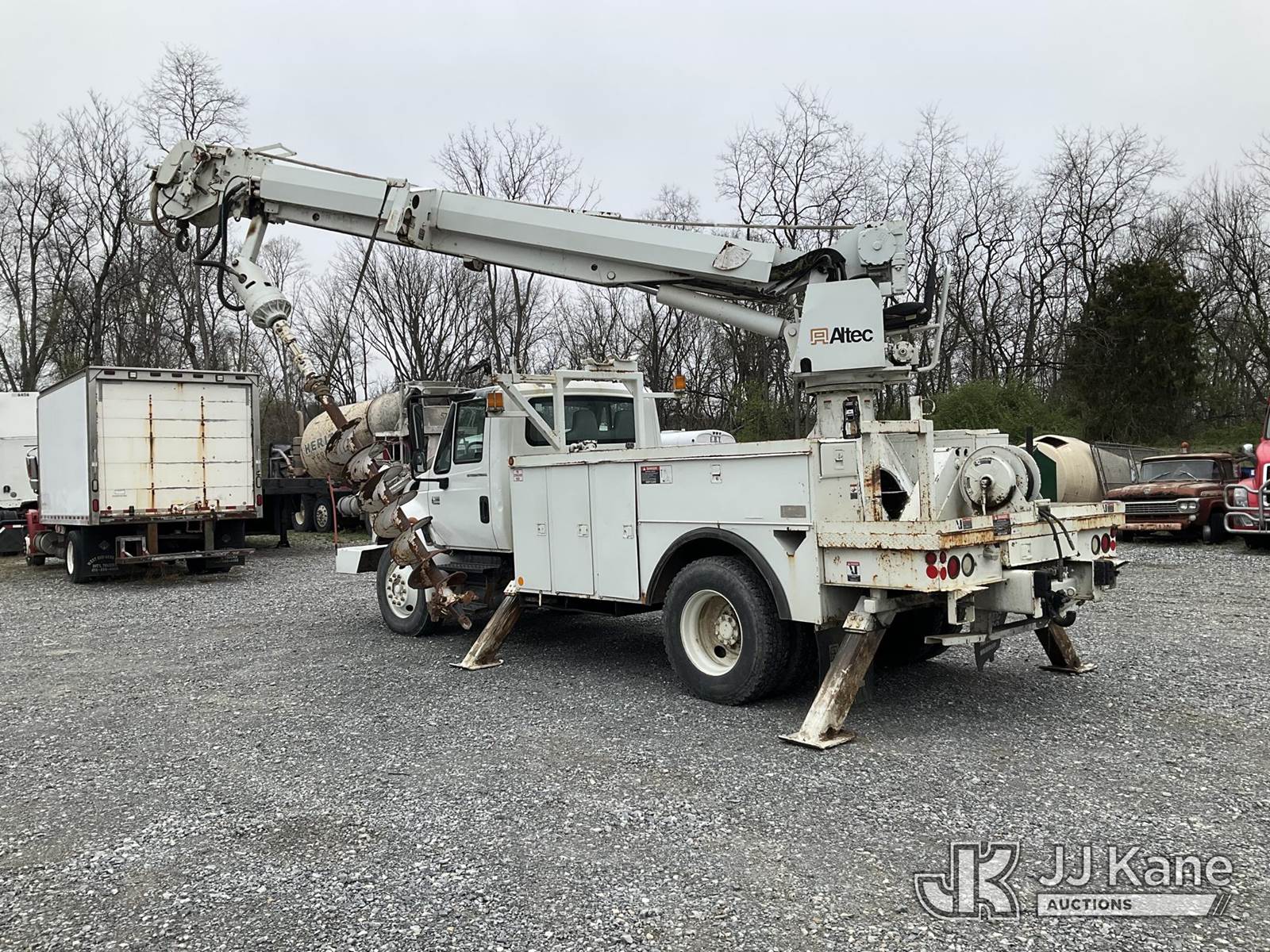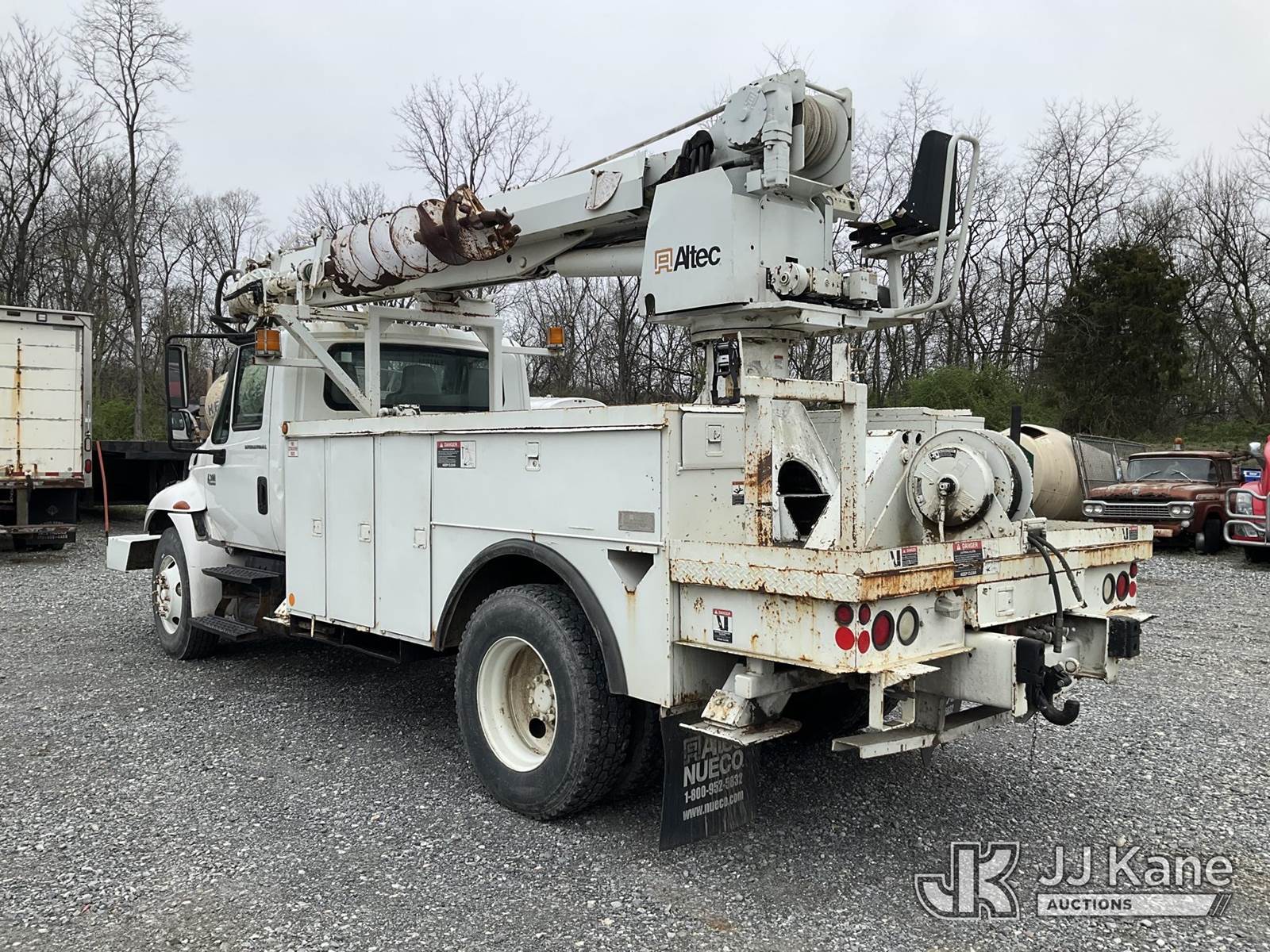 Altec DL45-TR, Digger Derrick s/n 0405DU0281, with 45 ft. sheave height, 3 section hyd boom, 2 spd digger, heel winch, pole guides, & 4 hyd outriggers, mounted on 2006 International 4300 Utility Truck, 7.6L L6 Diesel, 4X2, 6-spd, A/C, (Exempt from Odometer Disclosure - Reads 91,870 miles) (Runs, Moves & Operates, Engine Light On) (Removal is by Appointment Only, Buyer MUST make a appointment prior to picking up, Buyer/Transporter Must have PAID IN FULL RELEASE. No onsite assistance available, Please Come prepared) This is a Titled Item NOTE: This unit is being sold AS IS/WHERE IS via Timed Auction and is located in Hagerstown, MD. Inspection & preview days for this unit are by appointment only; please contact us at contact@jjkane.com or 84-Go-JJKane for more details. For pre-sale questions, please contact the on-site office @ (301) 895-7777 or Kevin.Waggoner@JJKane.com. (Missing manuals, See Auction Company for Manufacturers Information to obtain manuals) (Buyer is responsible for removal. Assistance by consignor or JJ Kane Auctions is not assured.)